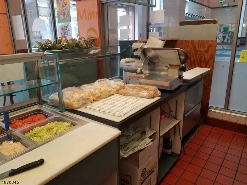 Great Location to make $$. Established 2 food businesses under one roof, Blimpie and free grill food or Pizza. Extra $$$ due to facilities in place for NJ State Lottery terminal. Have many loyal clientele, running business for more than 20 years. Very popular due to clean enviroment and good clean fast food and proximity to private and government office buildings. Store fixtures and equipment include counters, shelvings, cash register, walk-in freezer, 3 Chest freezer, walk in refrigerator, 2 slicers, 5 video camera plus videos surveillance system, and more. Store area is approximately 2.800 SF. Lots of chairs and table. Building has 24/7 security guard. Covered roof garage with 4 spaces. Own your business with a short time. Get your money invested back within 3 years.
