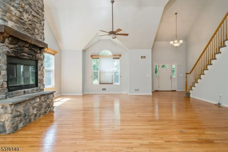Custom-built Colonial nestled on nearly 6 private and secluded acres! This unique home features a spacious great room with a stunning wood-burning fireplace, soaring ceilings, and rich solid wood floors perfect for entertaining or cozy nights in. The great room flows into the kitchen and out to a massive deck through sliding glass doors, ideal for indoor-outdoor living. The first-floor primary suite offers its own gas fireplace, creating a warm and inviting retreat. Upstairs, you’ll find three additional bedrooms and a bright open loft perfect for a home office, playroom, or reading nook. A 3-car garage provides plenty of space for vehicles, storage, or hobbies. A truly special home that blends rustic charm with modern convenience.