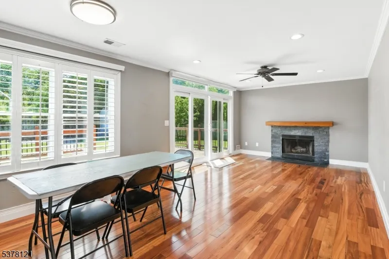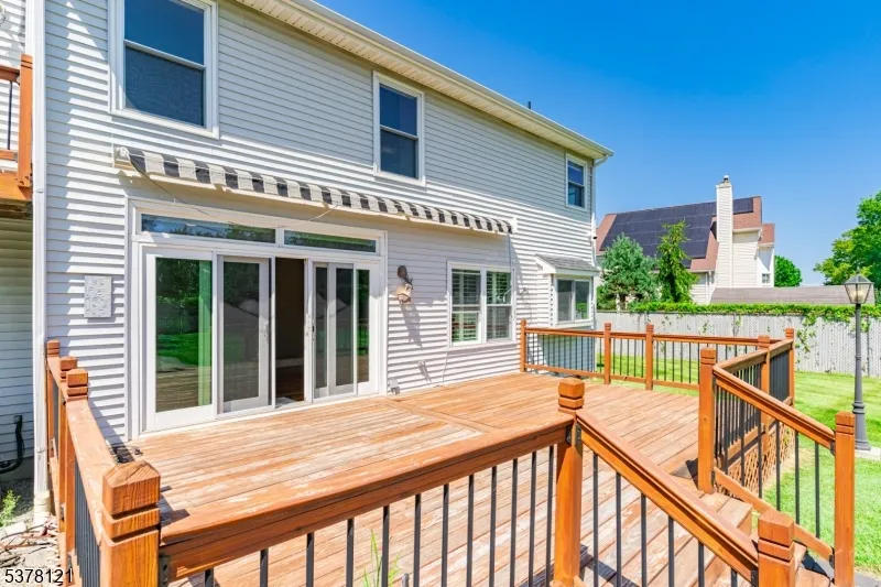 Enter this sun-filled, tastefully updated colonial featuring 5 generously sized bedrooms and 4 full bathrooms. Rich, newly installed Tigerwood hardwood floors throughout, creating a warm and elegant atmosphere. The first-floor suite includes a private full bath with imported porcelain tile ideal for flexible living arrangements. The chef’s kitchen is equipped with premium KitchenAid appliances, and a samsung oven, and offers an exceptional space for cooking and entertaining. All bathrooms have been thoughtfully upgraded with contemporary finishes, including sleek Grohe fixtures, porcelain tile, and Kohler toilets. Recessed lighting and ceiling fans throughout provide year-round comfort, and the first-floor windows are accented with stylish shutters. The fully finished basement includes a spacious recreation room perfect for a home theater, fitness area, playroom, or office. Outside, enjoy a private, fenced-in backyard featuring a large deck with a remote-controlled awning, a stone patio with a fire pit, and custom lighting an ideal setting. The striking covered front entry features a custom solid iron double door, enhancing curb appeal. Convenient access to major highways (Rt 9, Garden State Parkway, NJ Turnpike) and public transportation (just 1 mile to the Washington Rd & Main St bus stop). Outdoor recreation options and entertainment venues nearby. This move-in-ready home offers thoughtful updates, flexible living space, and a prime location schedule your visit today!