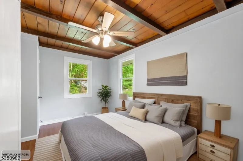 Welcome Home, be in before the Holidays! Lake-style ranch, no steps, rustic feel, beamed ceilings & peaceful retreat surrounded by nature just moments from the lake. Featuring 3 bedrooms and 1 bath, this move-in-ready home offers comfort and character throughout. Enjoy a cozy great room with wood-burning fireplace, beautiful ceilings, and a galley kitchen perfect for easy meal prep. The laundry room is conveniently located off the great room, with plumbing perfect for a second bath. Step outside to your deck, patio, and gardens, or relax on the front lawn by the fire pit. Two sheds and a fenced area (previously used to keep deer out of the garden) provide plenty of storage and outdoor versatility. Ideally located for outdoor adventures hike, bike, swim, fish, ski, or boat yet close to highways, shopping, restaurants, and spas for easy commuting and convenience. FP & chimney are being sold as is (no known issues).Come experience the tranquility and charm of lake living your perfect home retreat awaits! Motivated Sellers!