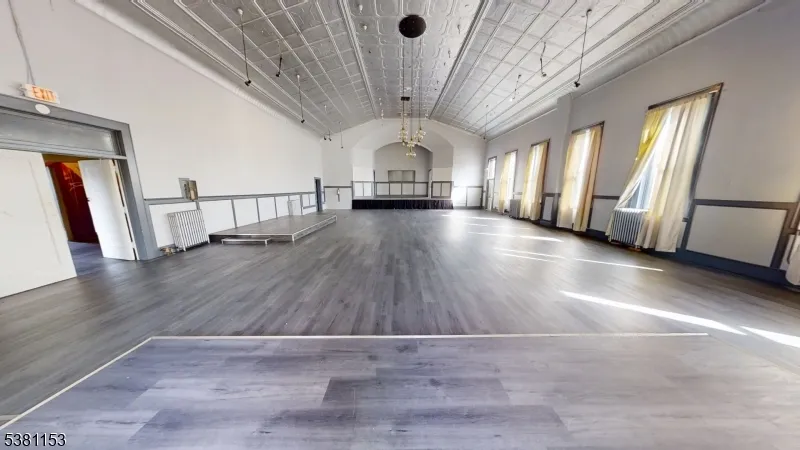 AMAZING SPACE, Very Unique. Classical Ballroom so many options. Check the Virtual Tour This expansive 4140 sq. ft. space occupies the 3rd floor of the building in Kearny. This space offers a unique blend of historic character & modern functionality. The space can be divided to suit individual tenants needs or it can be rented as 1. (Pending zoning approval for each individual use.)The centerpiece is a grand hall with a stunning ornate tin ceiling, arched entryways, and a stage area. Large windows flood the space w/ natural light, while elegant chandeliers provide ambient illumination. The hallway is very wide with wood-look flooring.Adjacent rooms showcase an eclectic mix of design elements.. New tenant can paint or make changes to suit their needs.The property includes 2 updated bathrooms with modern fixtures, marble-look tile flooring, and sleek finishes. Some smaller rooms feature vintage radiators and charming window treatments, preserving the building’s historical essence.Throughout the space, high ceilings and exposed ductwork lend an industrial feel, while carefully preserved architectural details like decorative moldings add refinement. The juxtaposition of old and new creates a unique ambiance, making this space suitable for a wide range of purposes, looking for a creative mind.Tenant to goto the Zoning / Building Dept before submitting application. Tenant Must provide a personal background check, business and personal returns