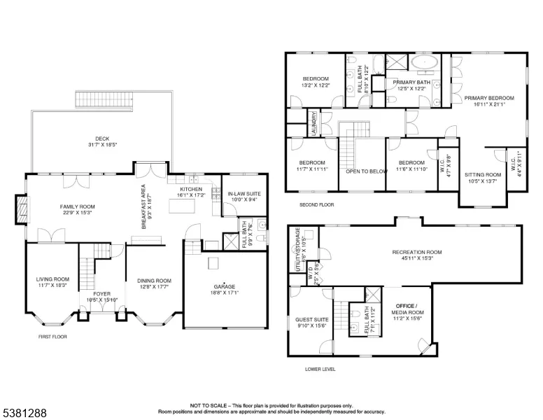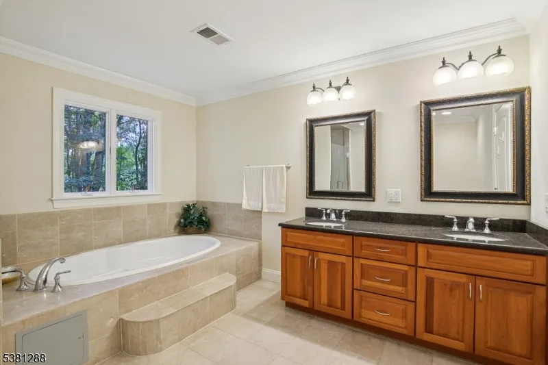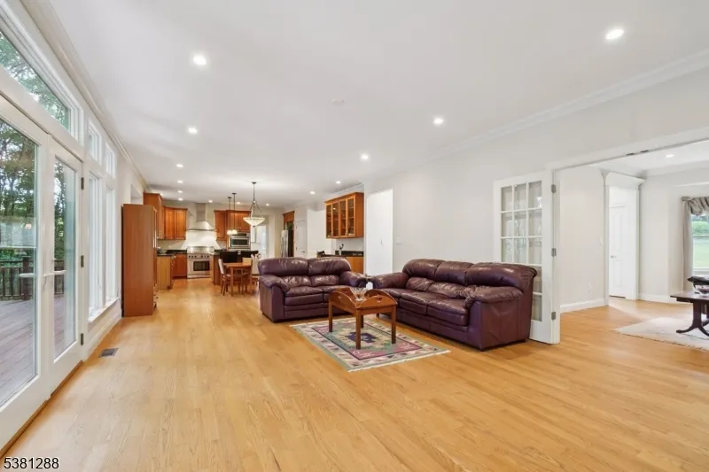 +"PublicRemarks": "This custom built center hall Colonial built in 2009 boasts 5 bedrooms, 4 full baths & an office, approximately 5000 sq ft. of living space, & features a huge wooded lot! Step into the grand 2-story entrance hall & be greeted by gleaming hardwood floors & tons of natural light. Main level offers ideal floor plan; an enormous family room w/ gas fireplace totally open to gourmet kitchen with custom cherry cabinets & top of the line Thermador stainless steel appliances, formal dining room w/ chandelier, office/guest bedroom & full bath. Large mahogany deck overlooks the private beautiful wooded property. The 2nd level has double doors open to Luxurious primary suite w/ sitting room & 3 closets, a spa-like bath w/ Jacuzzi, shower & double sinks, & 3 very spacious bedrooms, another full bath & laundry. Downstairs, finished walkout basement includes a guest bedroom, full bath, as well as a huge rec room which is perfect for living space/entertaining. Lower level can be used as in-law or guest suite! Hookups available to add wet bar & 2nd laundry in basement. This home also features easy 1st floor access to attached 2 car garage, Anderson windows/french doors throughout, 3 zones central AC & heat, security system, french drains, newer septic & utilities. Chatham offers top rated schools & Bus service provided up to high school. this home is close to all major highways & train/bus direct to NYC. Low property taxes! Do not need flood insurance, as home is not located in a flood zone!"
