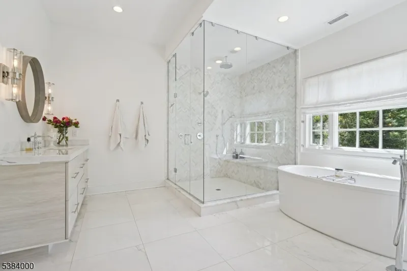 +"PublicRemarks": "Custom, Chic & Perfect! Welcome to 49 Woodcrest Avenue, a bespoke 6BR, 6.2BA Colonial ideally located on a private road in Short Hills, close to downtown and the NYC train. Elegant yet comfortable, perfect for everyday living, indoors or out. Step into the breathtaking foyer with soaring 10' ceilings and feel the spaciousness throughout. Relax in the inviting living room or host guests in the formal dining room. The open-concept kitchen and family room are flooded with natural light from oversized glass doors. The chef's kitchen features 3 Wolf ovens, a Wolf range, Sub-Zero fridge, refrigerated drawers, 2 Bosch dishwashers, microwave drawer and water filtration. Entertain effortlessly with Sonos throughout the first floor, patio, and pavilion. Enjoy a custom bar, built-ins, formal/informal powder rooms, large pantry, and mudroom. French doors lead to a backyard oasis with heated saltwater pool (auto cover rated for an elephant!), pavilion with grill, TV, fridge, fireplace, fenced yard, and oversized car garage. A tucked-away guest suite offers peaceful backyard views. Upstairs, the luxurious primary suite includes a spa-like bath, 2 California closets, one with a glass-topped island (Carrie Bradshaw would be jealous) and a private office. All bedrooms are en-suite with custom baths. The finished basement offers a bunk room, gym, rec space, full bath. (Room for wine cellar/wellness area.) Thoughtfully designed to offer luxury, comfort, and effortless sophistication!"