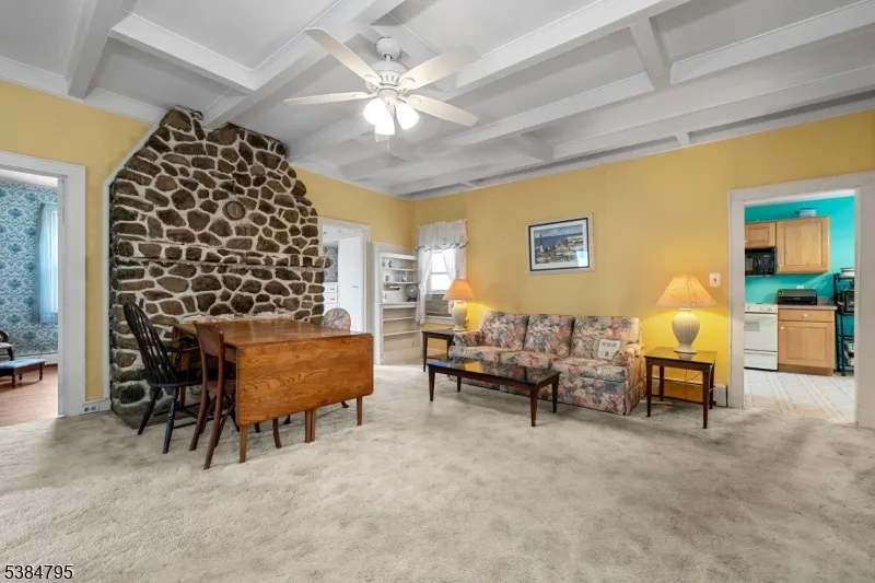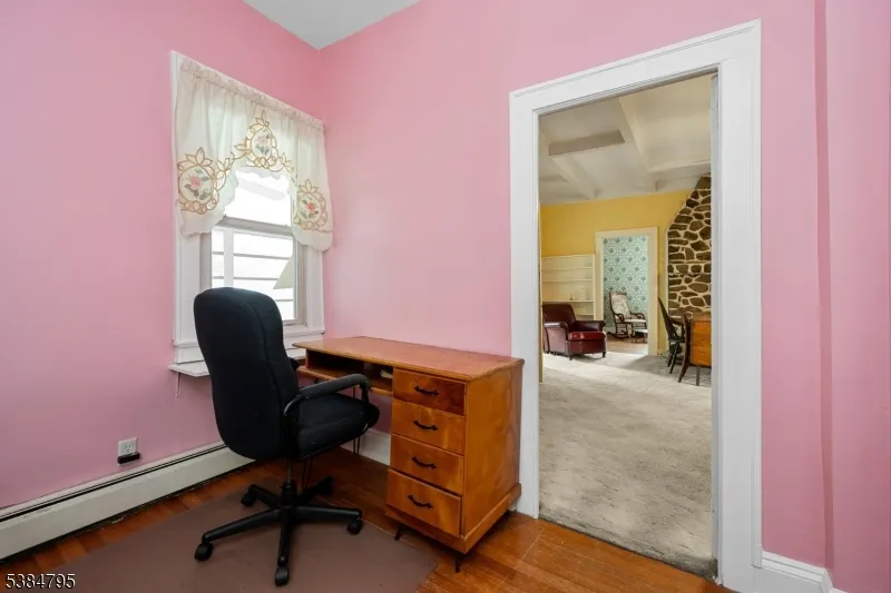 Charming 2-3 Bedroom, 1 Bath Ranch nestled on a beautiful corner lot backing to serene woods. This lovely home features a spacious living room with coffered ceiling and a stone fireplace. The eat-in kitchen offers classic oak cabinetry, dishwasher, microwave, pantry, with adjoining spacious breakfast room opens to the rear Trex deck through sliding doors. There are 2, possible 3 bedrooms filled with natural light and generous closet space, along with a sparkling updated bathroom. A convenient laundry room with built in cabinetry with washer and dryer included. Relax and enjoy the seasons from the welcoming enclosed front porch. Additional highlights include newer roof, a full walk-up attic, full unfinished basement w/bilco doors, private backyard, spacious Trex deck, detached oversized 1-car garage, and whole-house generator. With public water, sewer, and hot water baseboard heat, Roth Oil tank, this home is truly move-in ready and filled with potential. Don’t miss your chance to make this charming ranch your new home. Welcome home!