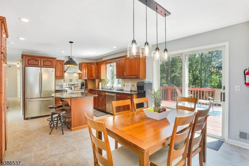 +"PublicRemarks": "Set on 5 private acres at the end of a cul-de-sac in Lebanon Township, this 5-bedroom, 4-bath Colonial offers 3,556 sq ft of living space plus a finished walk-out lower level, a heated in-ground pool, and a 3-car garage. Built in 1994, the home features spacious light-filled rooms, a granite-topped kitchen with cherry cabinetry, a formal dining room, and a cathedral-ceiling family room with a stone fireplace. The first floor includes a flexible in-law suite with its own fireplace and full bath, while the primary suite upstairs offers a spa-like bath with dual sinks, whirlpool tub, and steam shower. The lower level adds recreation and office space with direct pool access. Recent updates include two-zone central AC and oil heat with an above-ground tank. Surrounded by wooded acreage and moments from Teetertown Ravine Preserve, this home blends privacy, community, and convenience with easy access to major highways."