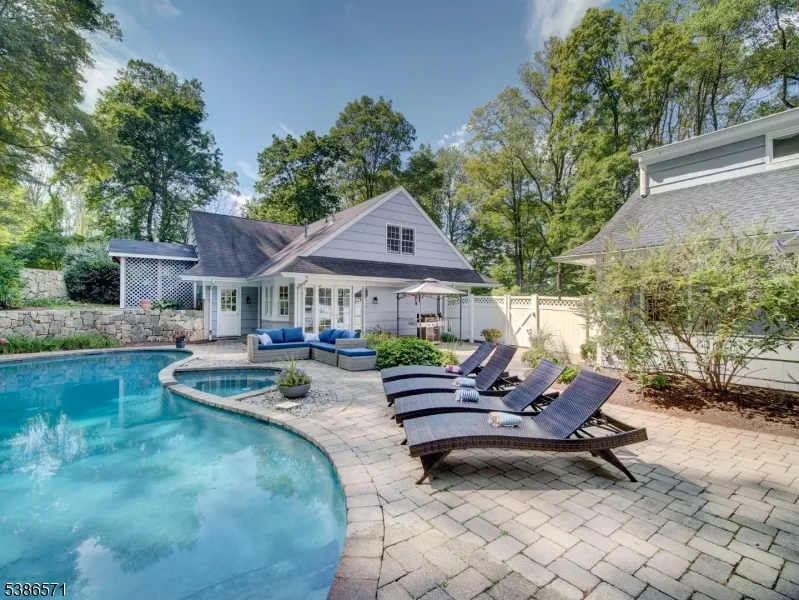 +"PublicRemarks": "Perfection & picturesquely set on over 5 acres nestled within Roxiticus Valley section of Mendham Twsp. Lush grounds adorned with mature trees, manicured shrubbery and valley views. Stunning CHC with four bedroom , octagonal sun filled designer kitchen. Spacious elegant living room with fireplace . Family room with a built in and cozy fireplace, Bonus oversized leisure room perfect for office or game room leading to pool house. Primary bedroom with on suite bathroom jetted bathtub, dressing room, walk-in closet and an additional closets. Laundry room on 2nd floor. Stand alone Pool House fitted with a kitchenette, storage, additional bath and storage for entertaining. And separate heating and air conditioning unit. Rear yard oasis with free form gunite heated pool and spa. Three car garage and a loft and expansive storage. Full basement with rec room and home gym with ADDITIONAL STORAGE! Prefect blend of luxury and tranquility, epitome of country living with easy access to NYC. Close to shopping, dining and HIGHLY rated MENDHAM TOWNSHIP SCHOOLS!"