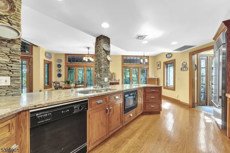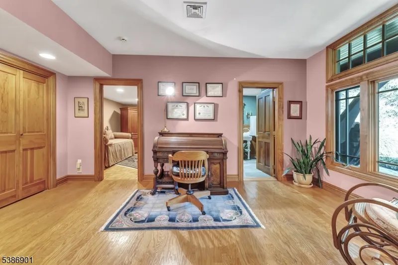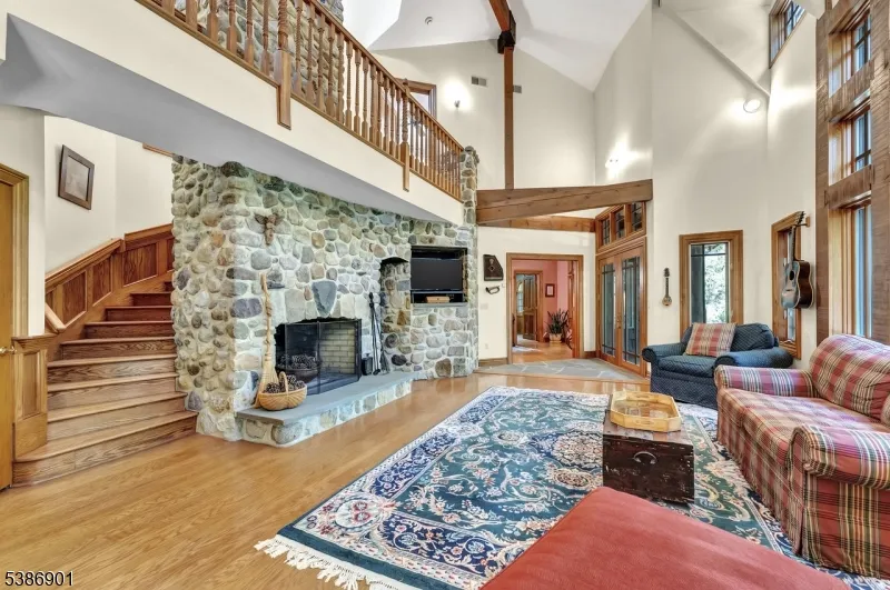 Experience refined living in this custom-built estate nestled on a serene 2.98 acre private lot. Crafted with exceptional attention to detail, this one of a kind residence features a beautiful copper roof, blending timeless elegance with lasting durability. Step inside to soaring vaulted ceilings that create an airy open feel throughout the main living spaces. The heart of the home is a true chef’s kitchen, a showstopper, designed for entertaining and culinary excellence, it boast’s top of the line appliances, custom cabinetry and generous prep space. The open concept layout flows seamlessly into spacious living and dining areas, ideal for both relaxed gathers and upscale entertaining. Enjoy a personal sanctuary with natural light from floor to ceiling windows.Cozy up beside one of two artfully crafted fireplaces each showcasing architectural detail, with sophistication at every turn. Step outside to enjoy complete privacy, mature trees and the tranquil beauty of nature. Set on a quiet wooded lot, this magnificent home offers privacy while still be conveniently located near major highways making travel, and commuting just minutes away from downtown Morristown with plenty of shopping and a wide array of restaurants.