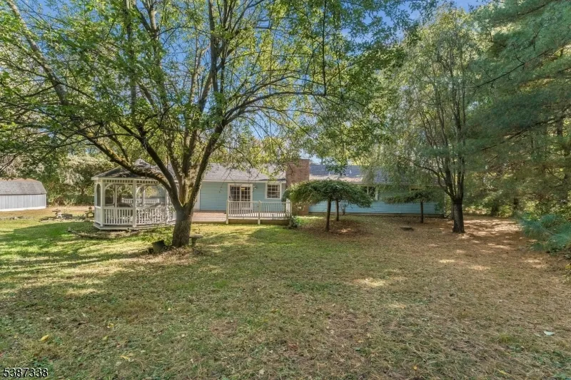 Discover effortless one-level living in this meticulously maintained, spacious 3-Bedroom 2-Bath Ranch offering over 2,200 sq. ft. of well-designed living space. Located on a nearly one-acre private lot, this home offers a flexible floor plan ideal for daily living and entertaining. Enjoy multiple defined living spaces, including a formal Living Room, a formal Dining Room, and an expansive Family Room complete with a wet-bar. The home maximizes efficiency with a functional Eat-in Kitchen, a dedicated Laundry Room, and a convenient Mudroom. The Primary Bedroom features an ensuite Bathroom and walk-in closet. A multitude of well-placed windows and French doors fill the layout with continuous, bright natural light. The private exterior is an established outdoor oasis, featuring a rocking chair front porch, an oversized deck, and a charming screened-in gazebo, perfect for entertaining and relaxation. Ample storage is provided by a large storage shed and an oversized 2-car garage. Peace of mind is guaranteed with a whole-house generator system, ensuring continuous comfort and power. Updates include Hot Water Heater (2024), Septic Repairs (2018), Well Pump (2017), Roof (2015), Gutters and Gutter Guards (2018). Located just minutes from Route 78, providing convenient access to commuter routes, shopping, recreation and dining in Warren and Hunterdon Counties. Spacious, convenient, and move-in-ready, this home truly has it all!
