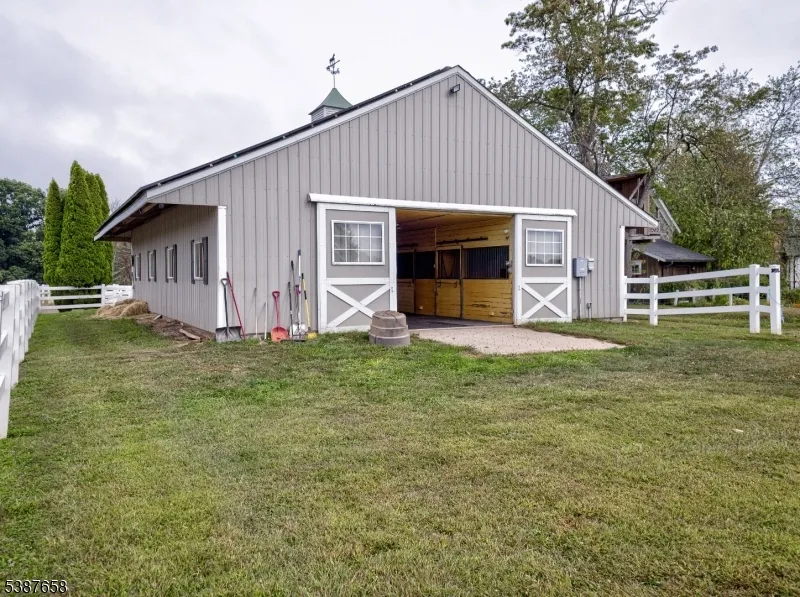 +"PublicRemarks": "Discover the ultimate equestrian experience at Beneficia Farm, set on over 10 picturesque acres. This state-of-the-art property is designed to impress, featuring exceptional amenities that cater to both riders and horses.The impressive timber frame and steel-clad pole barn houses six spacious stalls, all equipped with full floor matting and individual fans for optimal comfort. The center isle is covered in rubber mats, providing a safe and durable space for daily activities. Enjoy the luxury of a heated tack room and an oversized heated center aisle, complete with a stall fly spray system.A generous multi-spigot hot and cold water wash bay with a fan ensures your horses receive the best care. Additional features include a portable hay elevator and a spacious hayloft for convenient storage. The utility closet is equipped with electric baseboard heating.The outdoor arena, measuring 89 x 197 feet, is mirrored and illuminated, featuring stone dust and sand footing and an advanced eight-zone smart sprinkler system. Nighttime rides are a breeze with high-intensity LED lighting and a full 88-foot mirrored wall. Bluetooth speakers in the barn, stall aisle, and arena, as well as security cameras and exterior faucets. An adjacent feed shed provides extra convenience.Beneficia farm also offers access to scenic wooded trails and adjacent paddocks for turnout, along with ample parking for vehicles and trailers, thanks to a wide gravel driveway with easy turnaround access."