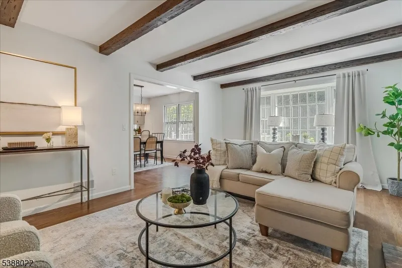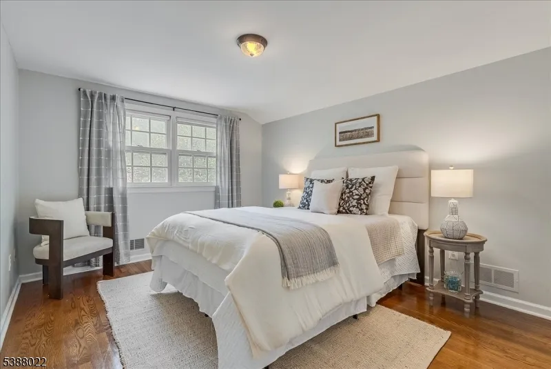 Welcome to this beautifully updated 4-bedroom home set on 1.24 private acres with mature trees, a covered front porch, and serene surroundings. The first floor is designed for everyday comfort and entertaining with an updated kitchen featuring new countertops, mostly new appliances, pantry and new flooring. A breakfast bar and dining area overlook the deck and backyard. The family room offers hardwood floors, built-in cabinetry and shelving, and a wood-burning fireplace with raised hearth, brick surround, and a charming closet for firewood storage. A powder room and mudroom with new flooring and direct deck access add convenience. An additional living/family room on the main level, complete with hardwood floors, closets, and an adjacent full bath, provides versatility as a first-floor bedroom, guest suite, or office. The foyer also boasts hardwood floors and a welcoming feel. Upstairs, four spacious bedrooms with hardwood floors include a primary suite with walk-in closet. Two bedrooms are connected by a Jack & Jill bath designed with separate sink and toilet areas plus a central shower room with linen closet, offering both privacy and practicality. Fresh paint and new light fixtures throughout enhance the home’s inviting feel. Outdoors, enjoy the large deck, mature landscaping, and the peaceful setting, all within close proximity to Chester’s shops, dining, and top-rated schools.