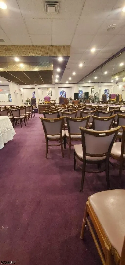 +"PublicRemarks": "Location! Location! Location! Beautiful spacious Commercial building/House of Worship seated on the border of Orange and West Orange, NJ nestled in a quiet residential arts district of Orange. Welcome to this chandelier lite inviting entrance leading to a raise stage at the front of the sanctuary overlooking an open floor plan with seating able to hold at least 130+ parishioners. The sound room is located at the rear of the sanctuary. The freshly painted large event/dining space located in the rear of the building can hold another 100+ people and has 15 feet ceilings, a separate kitchen area and multiple safety exits. There are two private office spaces available: secretarial office upfront and the other large office is located at the far end of the building providing cozy office space with a half bathroom. There are two separate male and female bathrooms. The basement space is large and useful for storage."
