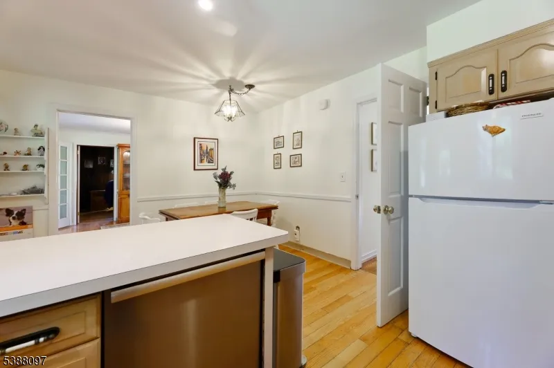 Set on a picturesque, tree-lined street in Great Notch, this brick home offers multiple levels for a versatile layout and flexible living arrangements.! A welcoming foyer leads into the formal living room, where a wood-burning fireplace sits against a custom woodwork wall and sunlight pours through the tall windows. Just beyond, the dining room features crown molding, chair rail detailing, and hardwood floors that extend throughout much of the main level. To the side, the family room offers a relaxed setting with built-in bookcases and a picture window. At the heart of the home, the eat-in-kitchen is outfitted with a gas cooktop and a wall oven, warm wood cabinetry, classic hardware and light countertops. From here, a door opens to the screened porch, where indoor and outdoor living meet. With room for both dining and lounging, this airy retreat naturally becomes a favorite gathering place. Two bedrooms on the first floor share a full bathroom while upstairs, another bedroom and the spacious primary suite include two walk-in closets. The lower level is perfect for flexible living arrangements with a family room, full bathroom, summer kitchenette, laundry, outdoor access, and garage access. Minutes away from public transportation!