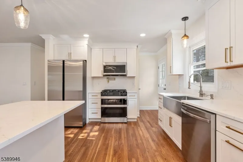 Located on a Quiet Dead-end Street offering a country setting vibe, with five-bedrooms and three full bathrooms.Fully Renovated from top to bottom.This exceptional home offers a blend of luxury, comfort, and convenience.Every detail has been thoughtfully curated with high-end finishes & modern elegance.Custom gourmet kitchen with quartz countertop, center island,new high-end appliances, stainless steel farm sink, Samsung gas convection double oven w/air fryer, pot filler & built in microwave.Continuous flow of hot water gas hot water heater. Recessed LED lighting. All 3 bathrooms feature custom tile design & Noan low profile ultra quiet exhaust fans.Primary bedroom has a full bath &Toto Washlet.Living room has an electric fireplace with heat. Finished basement has luxury flooring and features an office with French doors, family room, exercise room and custom designed laundry room with cabinets, and separate entrance. New water treatment system. Custom paver patio front and back. New driveway.Turnkey property on quiet dead-end street. All New: Energy efficient HVAC, lumbing lines & Electrical wiring, Insulation, Roof & Custom Board & Batten Siding, 200 AMP Service line with Electric Vehicle ready connection.1.1 Acre lot.Easy access to parks.Convenient to major highways, Route 287, 95, & NJ Transit train.Proximity to top-tier public charter & private schools. A vibrant array of shopping, dining, theaters, & recreation.Step into this tranquil & inviting home, make it yours.