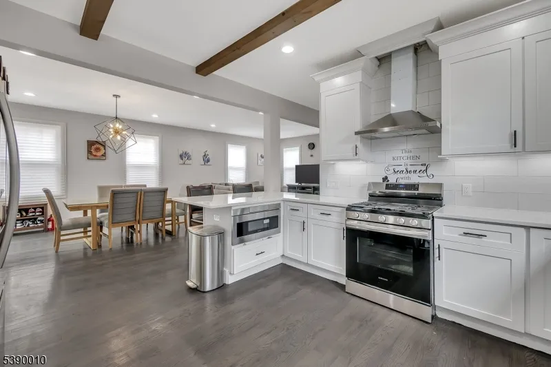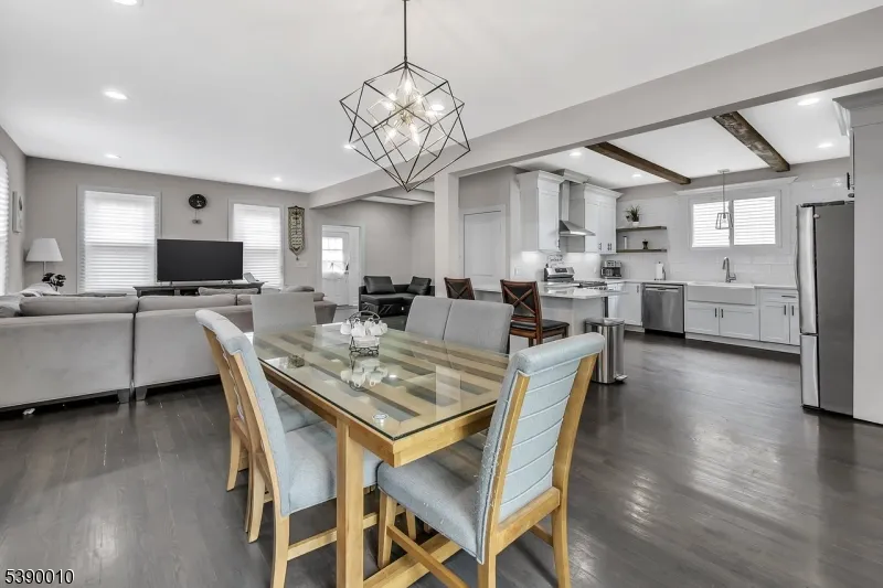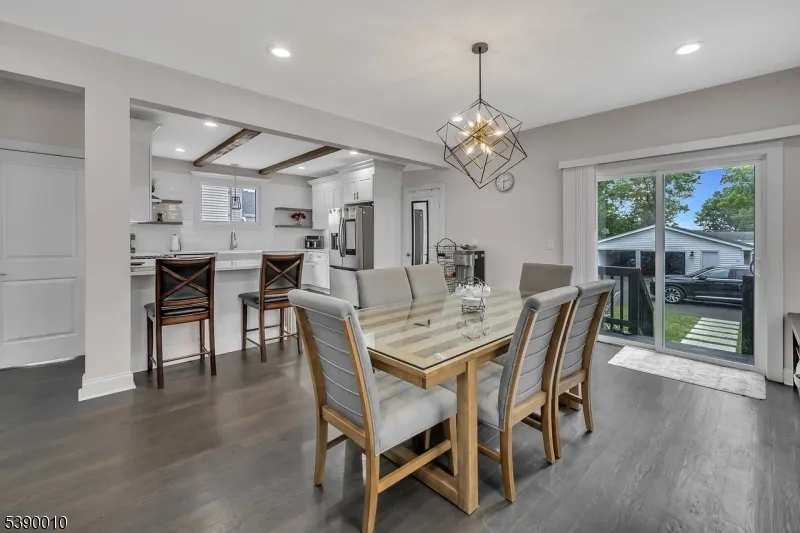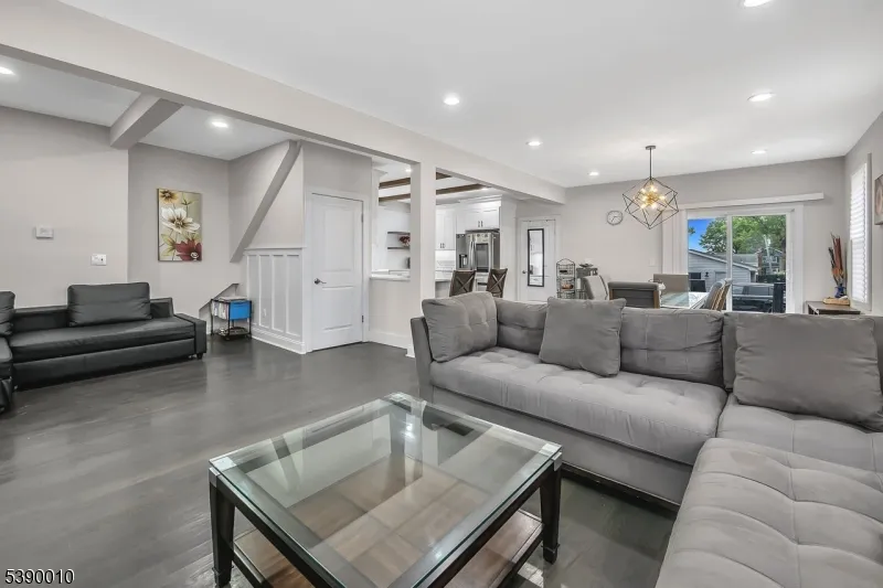 Beautifully modern 4-bedroom, 2.5-bath Colonial with stylish updates throughout. The kitchen features stainless steel appliances, a breakfast bar, soft-close custom cabinetry, under-cabinet lighting, and a beamed ceiling. The first floor offers gleaming hardwood floors, a spacious living room, and a dining room with sliding glass doors that open to a deep backyard, along with a full bathroom. Upstairs, four bedrooms and a modern bath complete the second level. The walk-up attic provides additional space for an office or playroom. The fully finished basement includes a recreation room, laundry area, and half bath. Additional highlights include a large two-car garage with plenty of parking, two-zone central heating and air conditioning, recessed lighting, refinished wood floors, and updated plumbing and electrical. Conveniently located near schools, shopping, dining, and transportation.