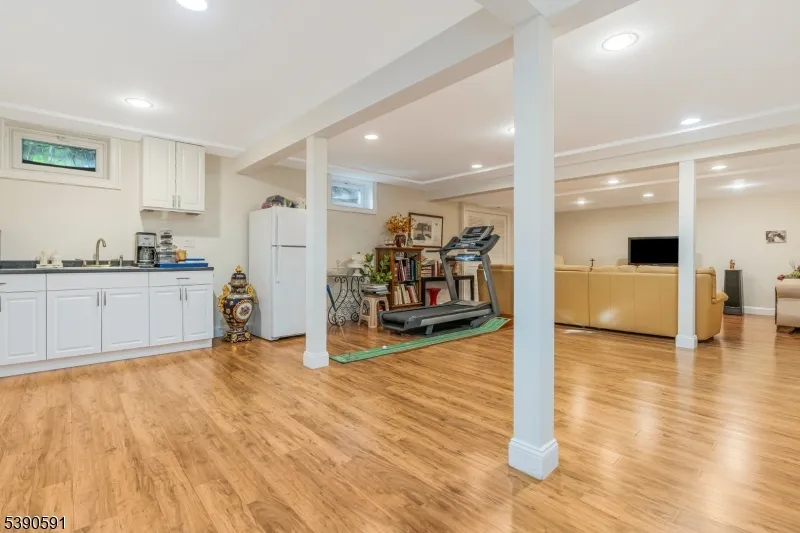 +"PublicRemarks": "Welcome to The Barons, one of Basking Ridge's most coveted communities. This rarely available end-unit ranch offers refined, easy living with an elegant, versatile layout enhanced by exceptional natural light. A welcoming open foyer leads into an expansive, open-concept living and dining area, where soaring ceilings, gleaming hardwood floors, and a wood-burning fireplace create a warm, sophisticated ambience. The kitchen, complete with an inviting eat-in area, flows seamlessly into the main living spaces ideal for both relaxed everyday living and effortless entertaining. The main level features two spacious bedrooms and two full bathrooms, allowing for truly convenient one-floor living. The finished lower level adds remarkable flexibility with a kitchenette, full bathroom, laundry room, and two additional rooms perfect for a home office, gym, playroom, guest space, or whatever your lifestyle requires. Step outside to a private back deck, a serene retreat bordered by mature landscaping for peaceful outdoor enjoyment. Additional highlights include a two-car garage, built-in generator, updated windows, and access to all the amenities that make The Barons so desirable pool, clubhouse, and meticulously maintained grounds. This exceptional end-unit ranch combines comfort, privacy, and low-maintenance living in a premier Basking Ridge location an outstanding opportunity not to be missed."