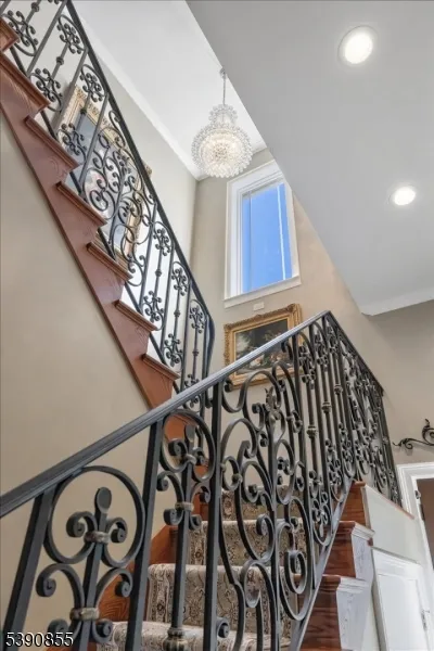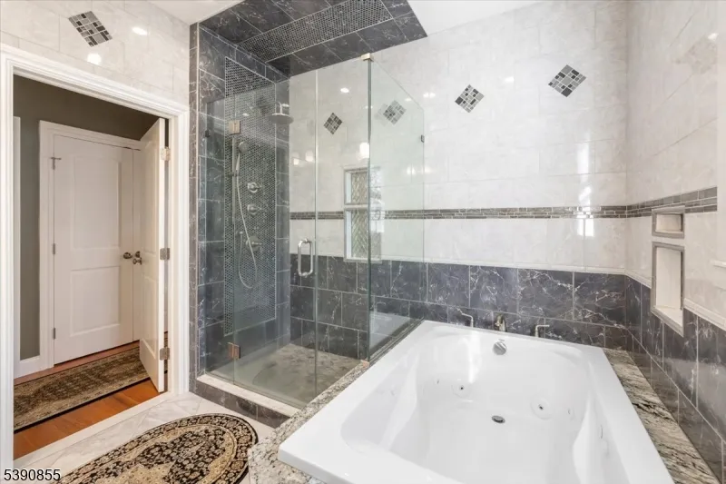 Inside, you’ll find four bedrooms and four bathrooms, all featuring the modern amenities expected in a newer build: wide-plank hardwood flooring, multi-zone heating and cooling, a heated garage, crown molding, elegant wrought-iron railings, and designer tilework in each bath.The main unit offers three bedrooms (two en-suites) and three full baths. The primary suite includes dual custom closets one a walk-in and a spa-inspired bath with a jetted tub, handheld and rainfall showerheads, and decorative tile detailing. The open floor plan includes a spacious living room, a formal dining area, and a beautifully designed kitchen with two-tone cabinetry, leaded glass accents, granite countertops, Samsung stainless steel appliances, a built-in hood, and a center island. A first-floor bedroom and full bath complete this level. Additional storage is available in the unfinished basement and floored, lighted attic.The second apartment with a private entrance is located on the 2nd floor. This unit is pristine, updated, and currently rented. It offers one bedroom, one bath, a large living room, a generous closet with built-ins, and a spacious eat-in kitchen. Additional storage in front entry and room for two cars to park in a private driveway. Enjoy the small-town charm and natural beauty of Bloomingdale, surrounded by scenic trails, lakes, and parks. Town offers recreation, convenience, and easy access to shops, restaurants, and major highways.