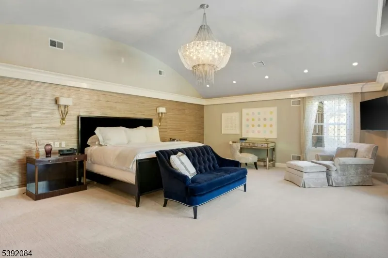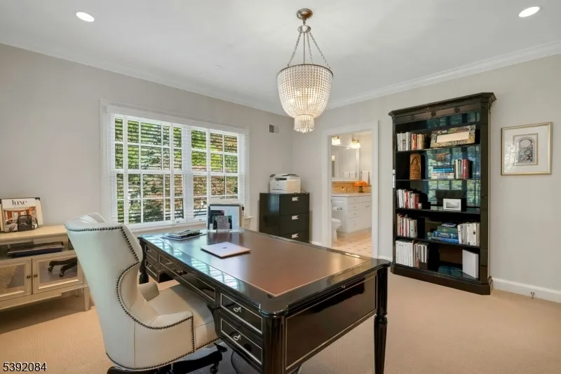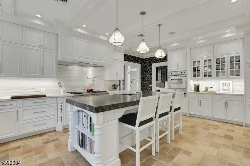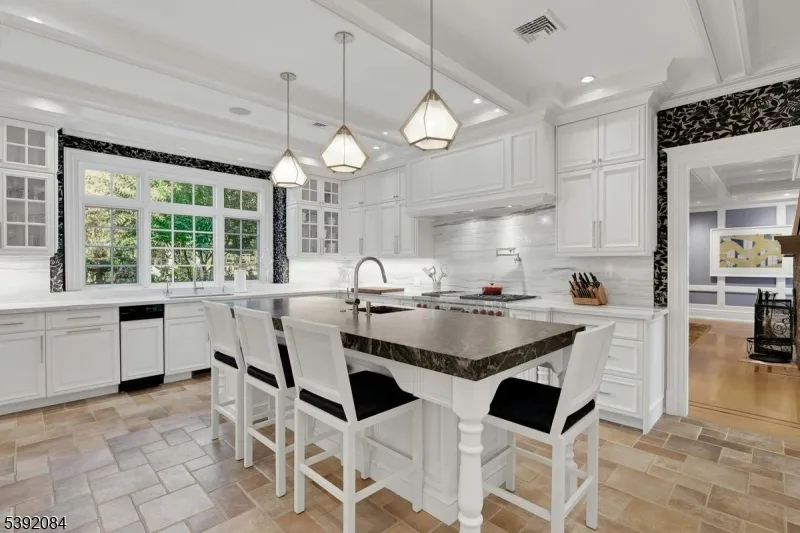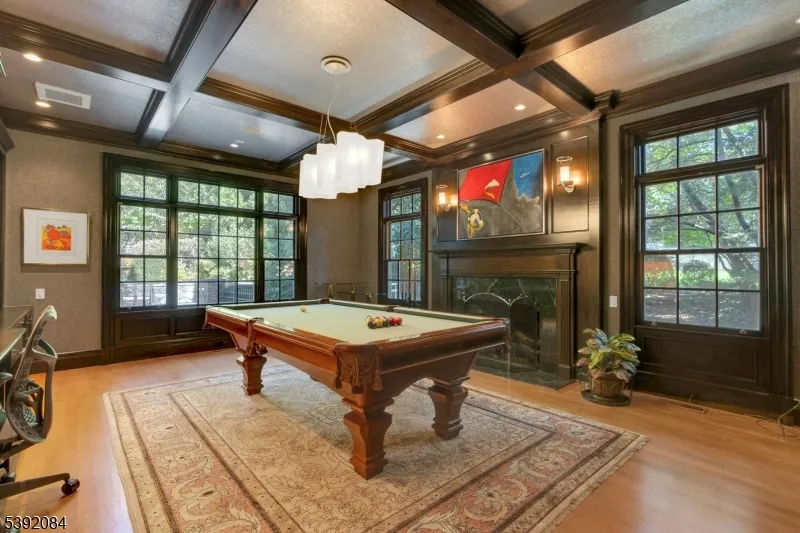 +"PublicRemarks": "Set on nearly an acre along one of Short Hills' most coveted streets, this Georgian Colonial estate blends timeless architecture with refined modern luxury. A dramatic double-height foyer with a grand split staircase, coffered ceilings, and marble floors sets an elegant tone. Formal living and banquet dining rooms house two of six fireplaces that flow seamlessly for effortless entertaining. A butler's pantry leads to the chef's kitchen with a leathered marble island, Nestos marble surfaces, and top-tier Wolf, Sub-Zero, and Viking appliances, opening to a sunlit breakfast area with garden views. The family room, anchored by a stone fireplace, features walls of glass overlooking the terrace and pool. A well-designed mudroom connects to the heated three-car garage and includes a spacious laundry room, built-ins, and a secondary staircase. Upstairs, the primary suite offers a sitting room, tray ceiling bedroom, spa-like bath, and custom dressing room. Four additional en-suite bedrooms are accessed via a gracious gallery hall with a gas fireplace. The lower level features a fitness studio, pool changing rooms, steam shower, powder room, and kitchenette. In addition, to a movie theater, wine cellar, game room, and guest suite. Outdoors, a heated saltwater pool, gazebo, and manicured grounds complete this exceptional offering near downtown Millburn and the Short Hills train. Showings begin Wednesday April 29th."