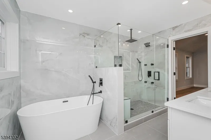 Welcome to this beautifully renovated Center Hall Colonial, offering a perfect blend of modern luxury and timeless elegance. Fully renovated in 2025, this spacious home features 4 bedrooms and 5.5 bathrooms, thoughtfully designed for comfort and style. Step inside to find an open and airy layout enhanced by recessed lighting and gleaming hardwood floors throughout. The living room serves as a cozy yet sophisticated gathering space, highlighted by a sleek electric fireplace set against a stylish accent wall. The modern kitchen is a chef’s delight, featuring stainless steel appliances, a center island, and a bright eat-in area perfect for casual dining. Upstairs, the bathrooms exude spa-like luxury, complete with a freestanding soaking tub, a glass-enclosed stall shower, and elegant finishes. The full finished basement offers ample space for recreation, entertainment, or a home gym, adding versatility to this exceptional property. Outdoors, enjoy a two-car detached garage and a large parking area, providing plenty of space for guests alike. This home combines contemporary updates with classic Colonial charm truly a move-in ready masterpiece designed for modern living.