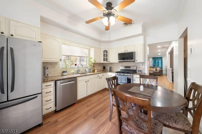 Welcome to this beautifully maintained 4-bedroom, 2-bath Colonial in the desirable Cranford Heights neighborhood. Combining comfort, style, and function, this spacious home offers a warm, inviting layout ideal for everyday living and entertaining. Enjoy a bright formal living room, large dining area, and comfortable family room flowing into a modern eat-in kitchen with newer cabinets, countertops, and stainless-steel appliances. The first floor also features a full bath and laundry area for added convenience. Upstairs includes three spacious bedrooms plus a versatile fourth bedroom or home office. The unfinished basement provides excellent storage, workspace potential, and exterior access. Additional highlights include two-zone heating, central air conditioning, and numerous updates throughout, ensuring year-round comfort and efficiency. Outdoor features include a deck and open porch, fenced yard with underground sprinklers, detached garage, and ample off-street parking. Prime location near top-rated Cranford schools, Memorial Field, Cranford Pool & Health Club, parks, and lighted tennis courts. Minutes to Clark Commons, Cranford Center shopping, and Garden State Parkway Exit 136.Move-in ready and outside the flood zone, this Cranford gem offers space, convenience, and timeless charm!