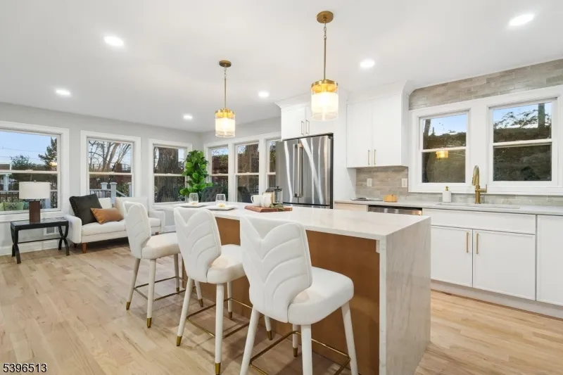 SPACIOUS ULTRA STYLISH home RENOVATED down to the STUDS! CHIC 5 BD + 3.5 BA COLONIAL w/ OPEN FLOOR PLAN in the HEART of PRESTIGIOUS Livingston! Main Level features HGTV Eat-In Kitchen w/SS Appliances, Quartz ISLAND and Walkout to TREX Deck overlooking Level Backyard. 2ND Floor hosts an EN-SUITE MASTER with FULL Bath and 2 closets + 3 Additional bedrooms, Laundry and full hallway bath. Finished Basement houses a Bedroom/Office, Spacious REC Room and FULL bath. Hardwood floors & recessed lighting throughout the home. Top Rated HIGH SCHOOL, NYC Bus and SHOP RITE ALL conveniently located right down the street. MOVE RIGHT IN and ENJOY LIFE in Livingston!