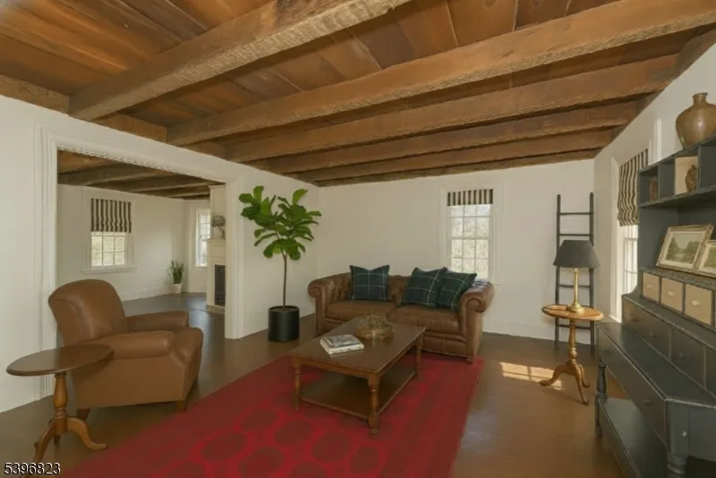 A Remarkable Blend of 18th-Century History & Modern Luxury! Discover a rare 1756 Colonial with an1830 addition. Once a well-traveled Revolutionary War tavern, this exceptional home has been meticulously restored and preserves treasured period elements including exposed hand-hewn beams, wide-plank floors, an original beehive oven, and multiple fireplaces, all seamlessly complemented by thoughtful modern updates. The formal dining room showcases an elegant bay-window alcove and fireplace, while pocket doors open to a warm, inviting living room with beautifully finished hardwood floors. The updated kitchen features quartz countertops, newer appliances, and large windows that fill the space with natural light. Modern comforts include 2-zone central air, 2-zone heating, and updated windows. Offering 4 bedrooms (2 without closets) and 3 baths, this home provides flexible spaces ideal for work, studio, or guest accommodations. Set on nearly an acre of beautifully landscaped property, the outdoor experience is fantastic as it features a multi-tier private backyard, three stone patios, Hessian-built walls, and a garden pergola, perfect for entertaining or peaceful everyday enjoyment. Prominently positioned among other historic Colonial homes in the heart of Succasunna, the location offers convenient access to shopping, dining, and major routes including 10, 46, 15, 80, and 206. A truly remarkable offering with rare historic character and modern livability! Don’t miss this one!