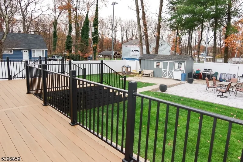 Welcome to this beautifully expanded and meticulously maintained Cape Cod home offering 4 bedrooms and 2 baths in the heart of Clark with Top Rated Schools. The first floor features an open concept living room with European white oak floors throughout the renovated kitchen with quartz countertops and GE Cafe line appliances, 2 bedrooms and updated bathroom bringing a modern touch, while the home retains its classic charm. One year old Miele W1 Excellence washer and dryer is also located on the first floor for your convenience. The second floor features 2 additional bedrooms with year-round comfort featuring a Mitsubish heat pump mini split. The home offers central heating, cooling, and an integrated dehumidifier throughout.The backyard is your private oasis, featuring new patio, composite deck, pavers and driveway (October 2025). The backyard also features extra storage space in the extended shed . A full, partially finished basement includes a securely anchored safe and a sump pump with an alarm. The front yard boasts a sprinkler system for easy maintenance, and solar panels provide energy efficiency. This home is move-in ready, combining comfort, style, and functionality in a sought-after location. Don’t miss this exceptional property! Close to schools, shopping centers, and easy access to NYC transportation.