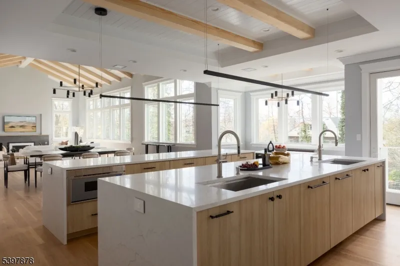 +"PublicRemarks": "Exceptional new construction mins from NYC, offering approx. 9,600 sq ft of masterfully designed living space across 3 finished levels. Thoughtfully built to balance everyday function w/ luxury living, this home features cathedral ceilings, exposed beams, custom millwork & wide-plank white oak floors throughout. The main level centers around a light-filled open floor plan anchored by a dramatic great room w/ fireplace & 7-ft windows w/ transoms. The dream kosher kitchen stuns w/ dual 12-ft quartz islands, double sinks, double ovens, two integrated refrigerators & a custom walk-in pantry. The adjacent dining area is elevated by a showstopper wet bar. A covered outdoor living room w/ built-in kitchen, fireplace & heaters offers year-round comfort. A private en suite bedroom, formal office & a mudroom complete the main level. The second level features 5 en suite bedrooms, including a palatial primary suite w/ vaulted ceilings, gas fireplace, radiant spa bath, custom walk-in closet w/ center island & private balcony. A large laundry room w/ double washer/dryer units adds convenience. The walk-out lower level offers oversized windows, direct yard access, an en suite bedroom, half bath, multiple recreation spaces & a lounge bar w/ island seating. The 3-car garage features 12-ft ceilings ideal for lifts & two EV charger locations. Finished in Hardie board & stone w/ Pella windows, smart home systems & whole house generator, this property is designed for how you truly live."