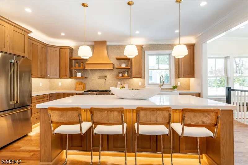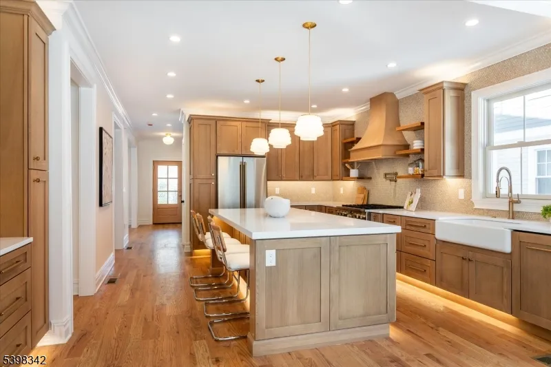 Another exceptional VG Builders renovation perfectly timed for the holidays!! This beautifully renovated Victorian is ideally located close to Walnut street village coffee shops, restaurants, boutiques, Farmers market and NYC midtown direct train. Completely redone from top to bottom with all new systems including electric, plumbing, roof, siding, Andersen windows, 3 zone hvac, flooring, kitchen and baths- offering a true new-construction feel with timeless architectural charm.A gracious open front porch welcomes you into a light-filled home with an ideal floor plan for todays buyer. Highlights include a mudroom with built-in storage, a custom kitchen with quartz center island, farmhouse sink, pot filler, high end stainless appliances, ambient and toe kick lighting, and a great room with gas fireplace. Dining room features a coffered ceiling, wet bar with wine fridge, decorative fireplace, and a stylish first floor powder room.The primary suite offers vaulted ceilings, a luxe bathroom with radiant heated floor, custom closet ,and private balcony overlooking the level, fenced, private backyard with new deck. Four bedrooms and 3 full baths on second floor with laundry and cute as pie wallpapered reading nook, 2 additional bedrooms plus full bath on third. Finished basement with rec room, powder room and bonus space. New garage with electric door. Thoughtfully designed, impeccably finished , and perfectly located- 63 Montclair Avenue offers turnkey living at its finest!