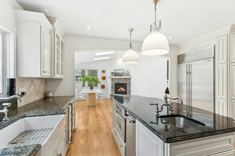 +"PublicRemarks": "Beautifully updated and expanded modern ranch set at the end of a quiet cul-de-sac! This stunning 3-bedroom, 3-bath home offers a seamless blend of contemporary style and everyday comfort. The bright, open kitchen features Viking appliances, a Sub-Zero refrigerator, large island and custom cabinetry, perfect for cooking and entertaining. The spacious layout includes large bedrooms with generous closets, formal dining room, family room with built-ins, plus three fireplaces that add warmth and charm throughout the home. A dedicated mudroom adds convenience, while the attached 2-car garage offers additional storage and easy access. Situated on a .34-acre lot, the home boasts a large, fully fenced backyard ideal for gatherings or play. Enjoy the tranquility of a peaceful neighborhood while being just minutes from top-rated schools, parks, Cranford's vibrant downtown, and the train for an easy commute. Move-in ready and meticulously maintained, this home checks every box! Not in a flood zone!"