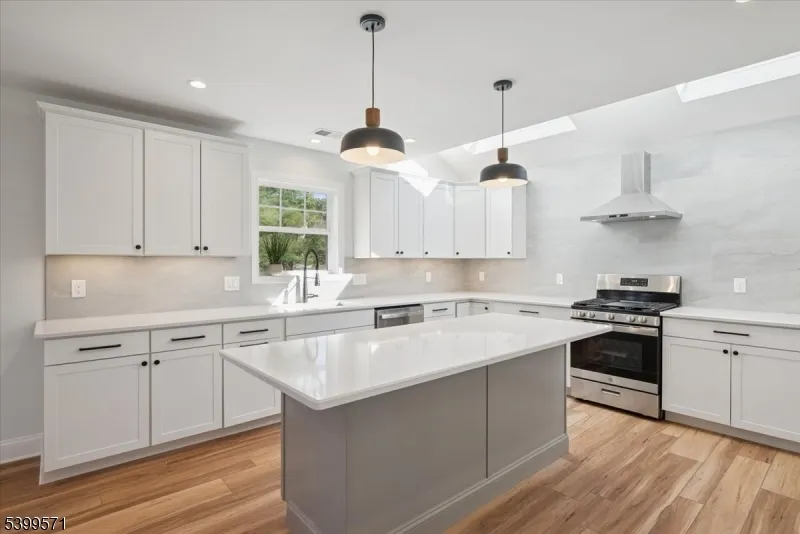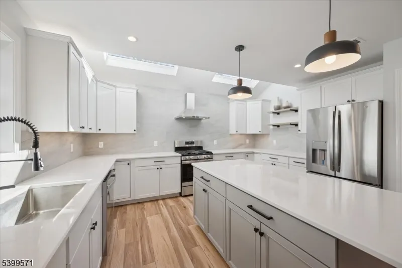Please submit your best offers by 12/23 12pm. brought back from the brink, stripped down to the studs, shirred up and extended. Now stands a beautiful, completely renovated gem ready for its new chapter in life. Welcomed by the new front porch, enter into the first floor offering a flexible floor plan with tons of natural light, beautiful kitchen boasting 2 generous skylights, tons of cabinets, center island with seating for 4, SS GE appliances, quartz counter tops, and fantastic backsplash. In addition, there is a half bath with custom tile, laundry room, Trex deck, and access to the basement and garage. One of the only original features remaining is the wide staircase leading upstairs which perfectly marries old world character to the thoughtful re-designed second floor. The primary bedroom offers huge walk-in closet, and custom full bath. The two additional bedrooms will not disappoint. One with a closet large enough to share with a desk or additional furniture. The basement floor was leveled and finished offering options for additional living space and has access to the outside. The huge backyard (see survey with corner markers) has endless possibilities. Additional features include: new garage, all new wiring, plumbing, HVAC,on demand Navien HWH, windows, doors and hardware, landscaping, driveway, walkway, front porch and large addition off the back of the house.