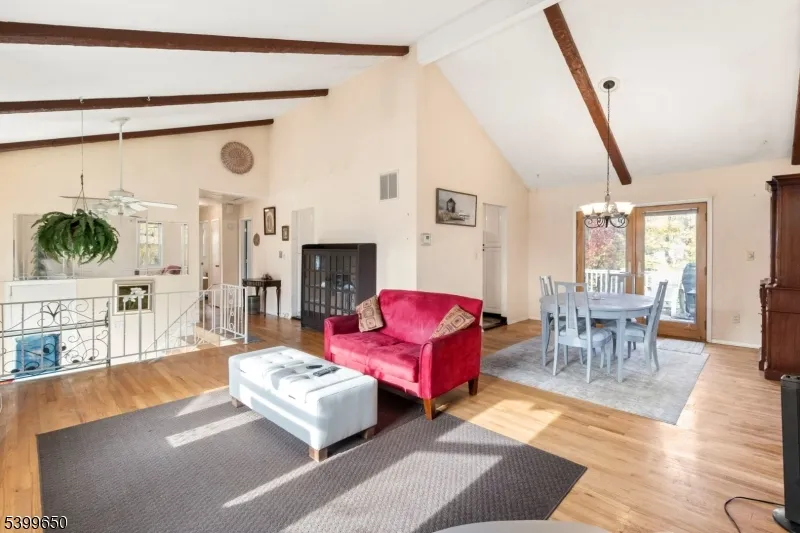 Welcome to this spacious bi-level home offering incredible potential, versatile living space, and a generously sized property in a desirable neighborhood. The bright main level features a sun-filled living and dining area with large windows, exposed beams, hardwood floors, and access to an oversized elevated deck?ideal for entertaining or relaxing while enjoying peaceful backyard views. The kitchen offers ample cabinetry, stainless steel appliances, and a functional layout ready for your personal updates. Three well-proportioned bedrooms are located on the upper level, including a spacious primary bedroom with double closets. Two full bathrooms, one on each level, offer oversized showers and generous storage.The lower level provides exceptional flexibility with multiple rooms perfect for a home office, guest space, hobby room, or recreation area. A large den/dining space with mirrored storage, a second kitchen/utility area, and walk-out access to the covered patio make this level ideal for extended living arrangements. The expansive backyard offers endless possibilities for outdoor enjoyment. A rare opportunity to customize a home with space, value, and potential in a sought-after location.