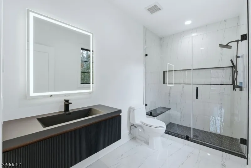 +"PublicRemarks": "Another stunning custom home by renowned Fermano Builders, perfectly situated on Demarests prestigious east side, offering over 7,200 sq ft of meticulously crafted luxury living on .55 acre. Designed by award-winning FDS Architects, this home features a dramatic two-story foyer w/ a floating glass-enclosed staircase leading into a breathtaking double-height family room w/ a striking stone-and-wood clad fireplace. A sophisticated glass wine display elegantly connects to the formal dining room. The gourmet kitchen is a chefs dream, boasting top-of-the-line stainless steel appliances, double islands, a walk-in pantry, a sun-drenched breakfast room, and a stylish wet bar just off the kitchen, perfect for entertaining. The first floor is enhanced by 10-foot ceilings and includes a refined office/library, a sumptuous ensuite bedroom/cabana, and two beautifully appointed powder rooms. Upstairs, the oversized primary suite features a serene sitting area, two expansive walk-in closets, and a spa-like bath w/ soaking tub and oversized shower, and complemented by three additional ensuite bedrooms and a convenient laundry room. The fully finished lower level provides a complete entertainment haven w/ a rec room, deluxe media room, gym, versatile ensuite bedroom, game room, and sleek wet bar. Additional highlights include a three-car garage, a covered patio, and room for a pool. This rare residence blends modern luxury, sophisticated design, and an unrivaled Demarest location."