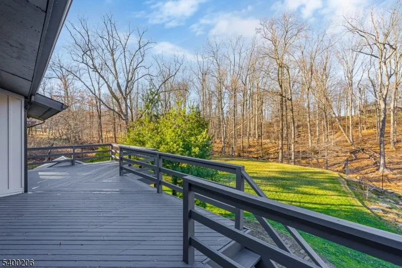 Beautifully updated and expanded 4-bedroom, 3.5-bath custom ranch set on a spectacular private, park-like fully fenced in property in highly desirable Warren Township. This sun-filled home offers true one-floor living, an open-concept layout, and exceptional indoor/outdoor flow perfect for both everyday living and entertaining. The main level features a spacious great room with cathedral ceilings and a wood-burning fireplace, seamlessly connected to the chef’s kitchen with center island and direct access to the expansive deck overlooking the fully fenced yard. The primary suite includes a renovated en-suite bath, while two additional bedrooms share a beautifully updated hall bath. A separate guest suite with a private full bath and its own outdoor balcony provides ideal space for visitors, in-law suite, or home office. The large finished walkout lower level includes a second wood-burning fireplace, laundry room/half bath, office or gym area, access to the oversized two-car garage, and additional unfinished storage space. With hardwood floors throughout, updated kitchen and baths, a flexible floor plan, and easy access to major highways and direct NYC bus service, this home combines comfort, convenience, and exceptional location. All within the top-rated Warren Township school district this property is not to be missed.