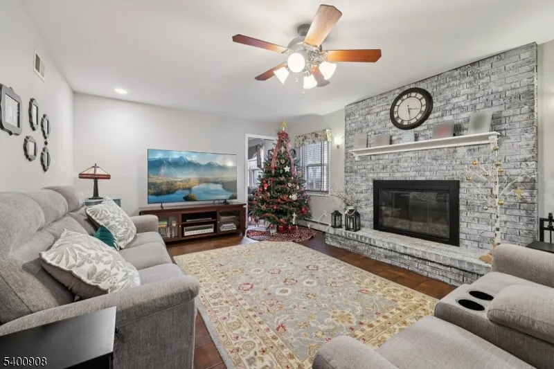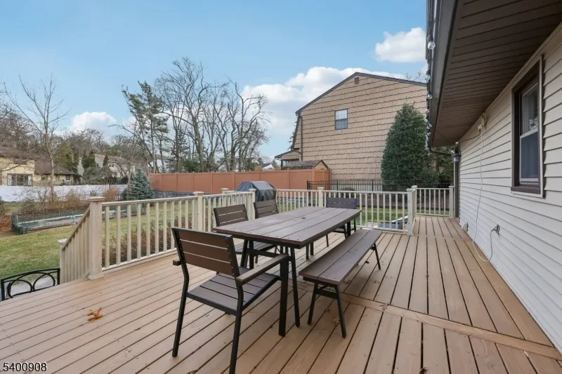 Welcome home to this beautifully maintained 4-bedroom, 3.5-bathroom Colonial set on a manicured lot on a quiet residential street. Step into the welcoming entry foyer that introduces the main living area. The bright living room showcases a large picture window that fills the space with natural light and creates a warm, comfortable setting for everyday relaxation. The living room opens to the cozy family room, highlighted by a brick fireplace and an inviting atmosphere ideal for gatherings or quiet nights in. The family room flows into the dining room, offering an elegant setting for intimate meals and hosting guests. The dining room connects to the eat-in kitchen, featuring custom cabinetry, quartz countertops, white appliances, and an additional dining area. Sliding glass doors lead to the sunroom perfect for enjoying year-round natural surroundings and out to the rear deck designed for al fresco dining and outdoor entertaining. A full bathroom and laundry room complete the first floor. Upstairs, the primary suite offers a walk-in closet and private bath. Three additional bedrooms and full bathroom complete the second level. Above the garage, a spacious office with high ceilings provides an ideal work-from-home retreat. The full finished basement includes den, powder room storage, and utilities. A 3-car attached garage adds convenience, and the expansive backyard is ideal for all your favorite outdoor activities. Ideally located near NYC transportation, shopping, and dining.