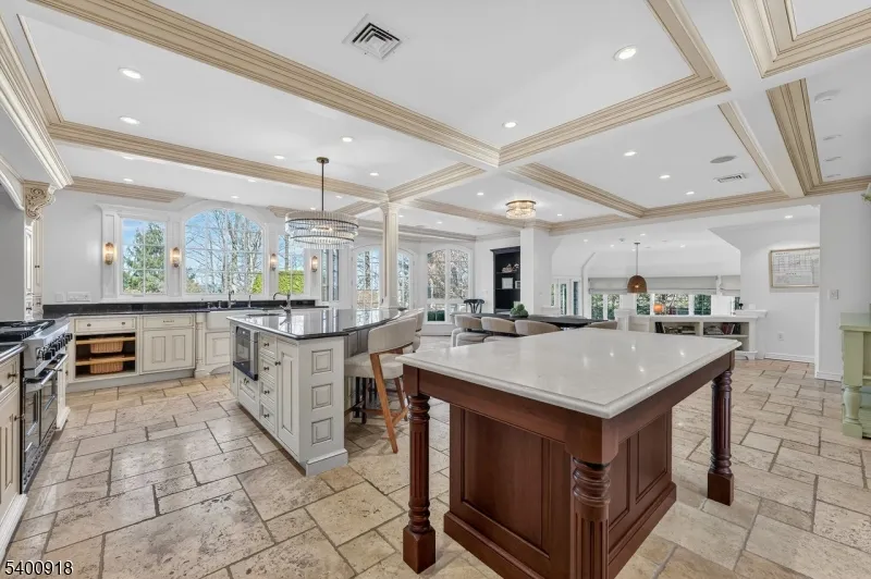 +"PublicRemarks": "Experience resort-style living in this exceptional North Caldwell residence, where timeless craftsmanship meets modern luxury. A grand marble entry with a sweeping staircase sets the tone, complemented by soaring ceilings, deep moldings, gleaming hardwood floors, and a richly appointed mahogany library. Built with steel beam construction and surrounded by lush landscaping, water features, and mature gardens, this home radiates quality inside and out. The handcrafted Canterbury-design gourmet kitchen is a true showpiece with premium materials and thoughtful detailing, opening to a bright, year-round solarium. Upstairs, the impressive primary suite includes a spa-like bath with an oversized shower and soaking tub, while all additional bedrooms are ensuite and generously sized. The finished lower level is an entertainer's dream featuring mahogany millwork, a wine cellar, professional bar, FULL SWING GOLF PRO simulator, projection screen, exercise room, and abundant storage. Step outside to your private oasis with a custom in-ground pool with hot tub, tranquil koi pond, multiple patios, an outdoor BBQ kitchen, and beautifully landscaped grounds. Offering unmatched luxury and lifestyle, this home delivers Montclair-style living with low North Caldwell taxes just 17 miles to NYC and minutes to trains, dining, parks, and a short distance to top public school system. A rare opportunity not to be missed."