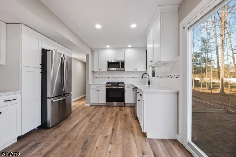 Welcome home to this exceptional expanded Cape that has been fully renovated from top to bottom! Sunlight pours into every room through the home’s abundant windows, creating a bright and airy feel throughout. The main level features a spacious first floor primary bedroom, ideal for convenient single-level living. The heart of the home is the beautifully reimagined chef’s kitchen, showcasing brand-new cabinets, sleek modern lighting, quartz countertops, and stainless steel appliances. Enjoy the elegance and durability of brand-new LVP flooring that flows seamlessly through the main living spaces, enhancing the home’s modern aesthetic and providing easy maintenance. Step outside to find stamped concrete walkways leading to a fantastic rear patio, perfect for outdoor dining, morning coffee, or evening relaxation. The fully fenced backyard offers an amazing spot for pets, play, gardening, or future outdoor enhancements. One of the home’s standout features is the huge rec room an ultra-flexible space that can serve as a home office, media room, playroom, studio, or whatever your lifestyle inspires. Additional highlights include a two-car garage with a brand-new garage door, updated systems, fresh finishes, and thoughtful improvements throughout. Move-in ready and meticulously upgraded, this home delivers modern living, abundant space, and timeless charm all in one. A true must-see don’t miss this incredible opportunity!