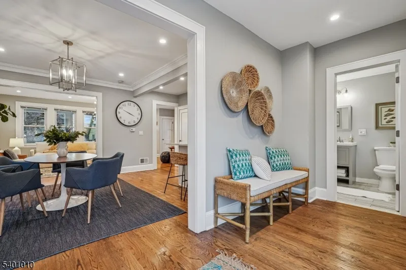 Welcome to this charming 3-bedroom, 2.5 bath Colonial nestled in Maplewood’s hottest neighborhood. Updated and move-in ready! Enter via the welcoming front porch, perfect for relaxing with a coffee or a cocktail. The first floor features hardwood floors, great flow, and lots of light. Entry foyer leads to spacious living room which flows to the formal dining room. Eat-in-kitchen offers quartz counters, newer stainless steel appliances, and large breakfast bar. Flexible office / mud room space off of dining room offers more space for organization, relaxation, or work. From there, walk out to the private, fenced-in backyard — the perfect spot to relax, play, and dine. A powder room completes the first floor. Upstairs, there are three good-sized bedrooms and a large, updated full bath. Walk up to the third floor, currently used as an oversized storage area but brimming with potential for finishing. Just bring your imagination! Downstairs, the finished basement offers high ceilings and includes a large recreation room, laundry area, updated full bath, and storage. Additional features include detached 1-car garage and central air / heat. Close to all that Lightning Brook, Hilton, and Springfield Avenue have to offer including shopping, restaurants, parks, Hilton Library, and the fabulous Maplewood Porchfest. Easy access to major highways as well as the jitney to NYC trains. Don’t miss it!