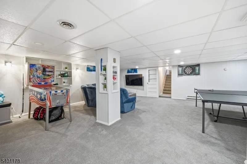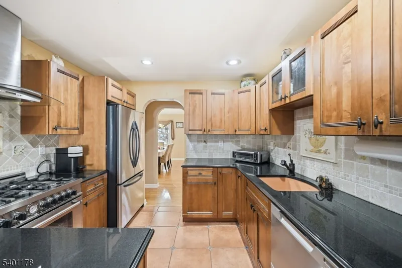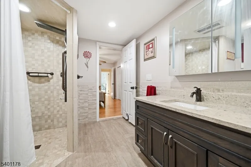 This is a beautifully maintained ranch-style home offering comfort, convenience, and exceptional indoor and outdoor living. Step through the foyer with a closet, and into the spacious living and dining rooms with hardwood floors that flow throughout. The updated kitchen features granite countertops, SS appliances, and a pantry for storage. An inviting family room sits just off the kitchen and boasts sliding doors that open to a large Trex deck. Down the hall, you’ll find additional storage closets and well-proportioned bedrooms, including a serene primary suite with a private full bath (handicap accessible) & nearby laundry. A second full bath completes the main level. Step outside to your private backyard oasis, featuring a heated, in-ground Roman-shaped saltwater pool and a lighted cabana, ideal for summer gatherings and quiet evening retreats. The finished basement expands your living space with a recreation room featuring built-in benches, a convenient kitchenette, ample storage and a powder room. Additional peace of mind comes with a 5-year-old HVAC system. Enjoy a walk-up attic for additional storage as well as a one-car detached garage. Located in sought-after Glen Rock, this home provides access to a vibrant community known for its excellent school system, town pool, and the convenience of two train lines to NYC, making commuting effortless. A rare blend of comfort, style, and location, this home is ready to welcome its next owner