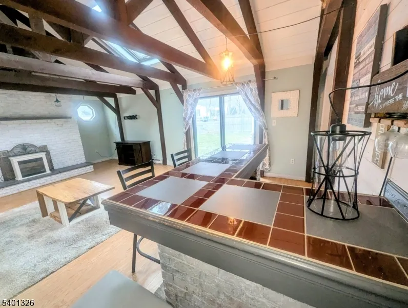 +"PublicRemarks": "One level ranch living in sought after neighborhood with 3BR, 1.5BA, 1 car garage, public H2O & sewer, natural gas heat, vinyl siding, spectacular 23x17 family room with cathedral ceilings, skylights, dry bar, brick fireplace & sliders to deck. Living room with 2nd fireplace. Plenty of additional parking with double wide blacktop driveway. Fenced level yard with outbuilding storage & fenced garden area. Close to highways, schools, shopping & recreation. Musconetcong river with great fishing nearby."
