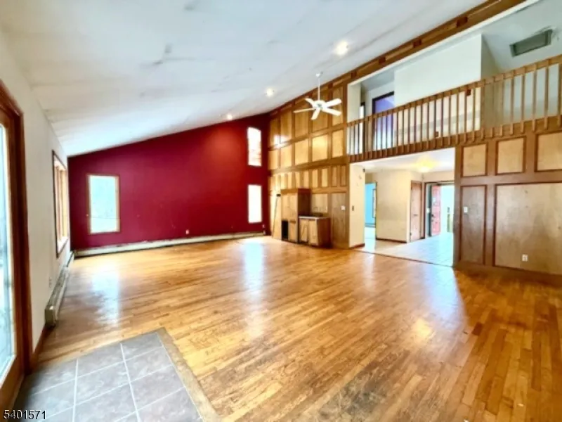 +"PublicRemarks": "Welcome to this peaceful retreat set on 3.68 private, park-like wooded acres, offering a serene lifestyle just minutes from Historic Belvidere. This 4 Bedroom, 3 Bath home features spacious open-concept living areas filled with natural light from large windows and skylights throughout. The impressive great room showcases cathedral ceilings, recessed lighting, custom built-ins, and a wet sink, with sliding glass doors leading to a large deck overlooking the surrounding woods-ideal for entertaining or quiet relaxation. The open kitchen, dining and living room areas flow seamlessly together and include a breakfast bar, fireplace, soaring ceilings, and scenic views, creating a warm and inviting space. A first-floor bedroom with a full bath nearby offers flexibility for guests or a home office. Upstairs, the hallway overlooks the great room, enhancing the home's open design. The primary bedroom suite features a walk-in closet, separate vanity area, and private bath. Additional highlights include a first-floor laundry room and mudroom, an oversized 2 car garage, a full basement with high ceilings and walk-out bilco doors, and a storage shed. Conveniently located near the Pequest River, parks and nature trails as well as historic Belvidere's restaurants, shops, community pool, events and the Delaware River, with a short drive to major highways. A rare opportunity for elegant country living with privacy, space and natural beauty."