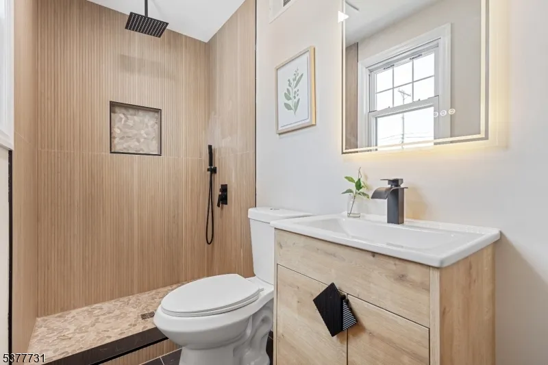 Welcome to Emerald St – a stunning, fully gut-renovated single-family home on a quiet dead-end street in Hackensack. Showcasing elegant emerald accents, this home features a first-floor primary suite, brand-new roof, siding, retaining wall, 2-zone central heat/air, and all-new plumbing and electrical. Parking is available in the back. Ideally situated just minutes from Target, Riverside Square Mall, and only a 4-minute walk to the NYC bus stop, offering a quick Manhattan commute. A perfect blend of modern luxury and convenience!