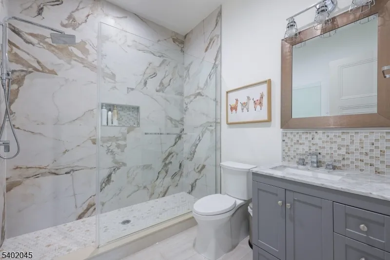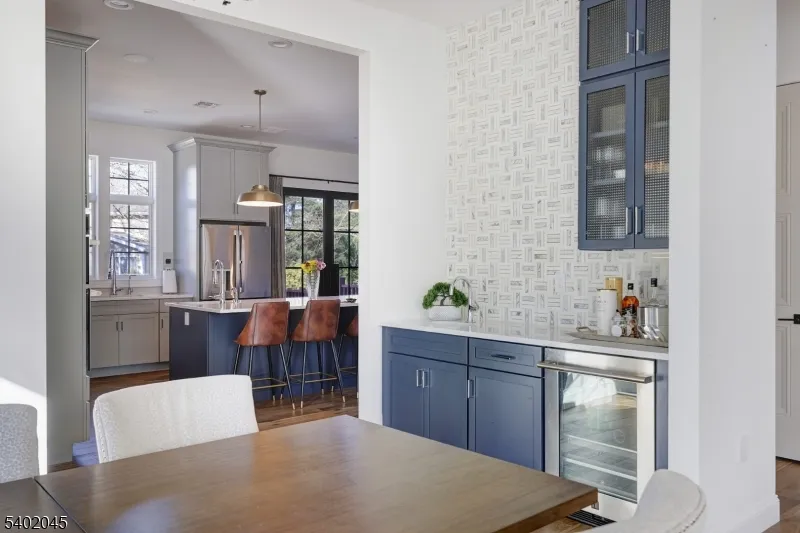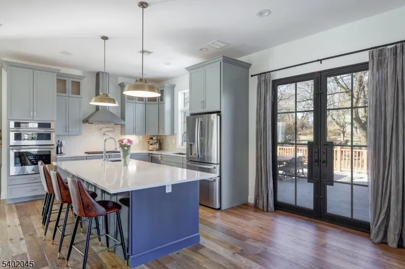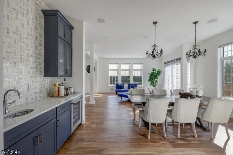 Exquisitely designed 5 BR, 4.5 Bath home boasts luxurious amenities throughout. Grand 2-story entryway welcomes you to the open floor plan living space that features a sun drenched living room which flows seamlessly into the dining room & kitchen area. Expansive gourmet kitchen features stainless steel appliances, convenient pot filler, hot water spout for sink, 2 dishwashers, 2 beverage coolers & massive walk-in butler’s pantry. Spacious prep island, complete w/ wine fridge, countertop seating, storage cabinets and its own sink & dishwasher. Cozy up alongside the custom gas fireplace or watch the big game in the oversized family room that opens directly up to the kitchen. 1st floor bedroom features a full bath en-suite and can make the ideal guest room or home office. Primary bedroom retreat offers a lavish sanctuary to decompress with an oversized stand-up shower, dual sink vanity & towel warmer. Upper level laundry room provides an added ease to laundry duty. Spacious, multi-level wrap-around deck with multiple entry ways, granite for fire-pit, gas outlet for grill & wiring ready for outdoor speakers. Whole house filter & RO system for drinking water. Heated garage w/ electric car outlets & extra washer. Other features include built-in Kef speakers on the 1st floor & basement movie theater, Wifi enabled Sprinkler system, Wifi extenders for whole house, hard-wired exterior CCTV cameras & video doorbell. Stately elegance & refined craftsmanship found throughout the home
