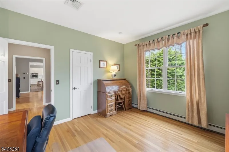 +"PublicRemarks": "Welcome to this spacious and elegant 4+ bedroom, 3.5 bath colonial set on beautiful park-like grounds, conveniently located near town, schools, and commuter routes. The main level features a formal living room and dining room, a sun-filled oversized family room with a wood-burning fireplace, and a versatile office/bedroom/den with a fully renovated modern bath. The remodeled kitchen offers quartz countertops, updated appliances, an oversized center island, a separate bar area, and a spacious eating area overlooking the private two-tier backyard patio with fire pit. The second level includes an oversized primary suite and an en-suite bath. Down the hall is an updated bathroom, 3 bedrooms, plus a possible 4th bedroom and a bonus/recreation room. Recent updates include a new driveway, updated front sidewalk, and newer central air units. Additional features include an irrigation system, oversized high-bay three-car garage with generator hookup, first-floor laundry/mudroom, central vacuum, back staircase to the second level, and a walk-out basement. If you are looking for space, flexibility, thoughtful updates, and a convenient location - Welcome Home!"