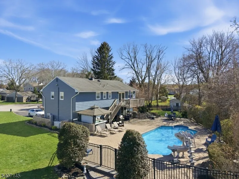 +"PublicRemarks": "4 Bedroom Home on Quiet Cul-de-Sac with In-Ground Pool, Large Yard & Modern UpgradesTucked away on a peaceful cul-de-sac in Morris County, this move-in ready 4-bedroom, 2.5-bath home offers an ideal balance of privacy, functionality, and outdoor living. Set on a rare, large usable lot, the backyard is designed for entertaining featuring an in-ground pool, spacious deck, koi pond, and two storage sheds (one with electric). The yard is fully fenced and thoughtfully laid out, creating a private outdoor retreat. Inside, the bi-level layout offers flexible living across two levels. The main level features a bright living room, kitchen, three bedrooms including the primary suite and two full bathrooms: one in the primary suite and another conveniently located off the main living area. The lower level includes a large family room, an additional bedroom, half bath, laundry area, and direct garage access ideal for guests, work-from-home space, or everyday convenience.Bathrooms were updated in 2023, and the home includes central AC, baseboard heat, and public utilities. Additional upgrades include a 20,000-watt whole-home generator, Tesla-compatible EV charger, and water softener system.Located in a quiet, low-traffic neighborhood with strong schools and convenient access to shopping and major routes, this property offers space, privacy, and lifestyle in one place."