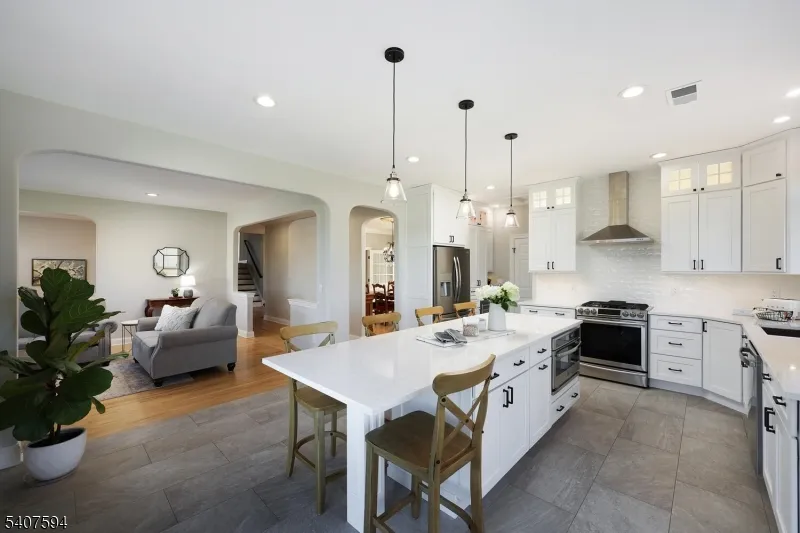 +"PublicRemarks": "This beautifully updated 5-bedroom, 3.5-bath home with a ground level, private, in-law suite in Hillsborough?s highly sought-after Pleasant View Farms III will impress at every turn with its thoughtful design, flexibility, and style. The stately brick front, accent lighting, manicured landscaping, and newer paved driveway create standout curb appeal, while the wrought-iron fenced backyard and expansive deck offer the perfect setting for entertaining or relaxing. Step through the double-door entry into a bright, open foyer with seamless flow to the formal dining room, sunken living room, family room, and stunning kitchen. The ground level includes a convenient in-law suite with its own living space, bedroom, and full bath accessible from the garage entrance. Features throughout include recessed lighting, crown molding, chair rail, wall sconces, French doors, refinished or new hardwood floors, and updated baths. The fully remodeled 2020 kitchen showcases quartz countertops, a 9-foot island with seating for five, cabinet-faced pantry, coffee bar, wine fridge, and stylish lighting. Upstairs offers four generous bedrooms, including a luxurious primary suite with tray ceiling, custom closets, and a renovated bath with dual quartz vanity, wainscoting, soaking tub, and oversized shower. The third-floor bonus recreation room, complete with skylights, adds even more versatile living space. Schedule your showing today?this exceptional home won?t last!"