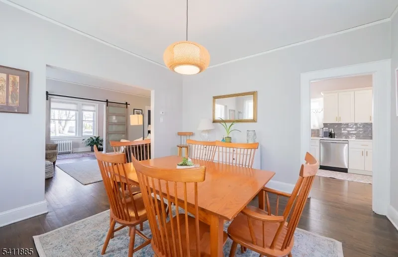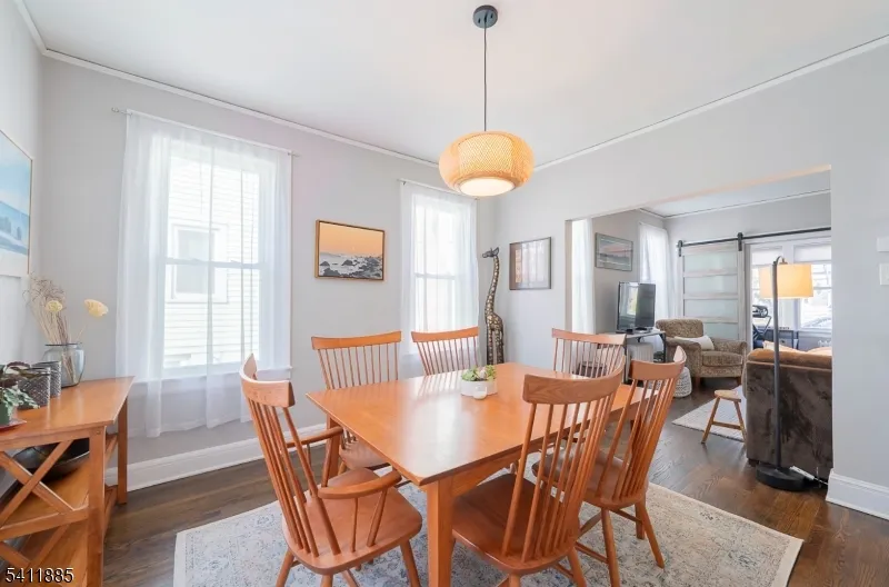 +"PublicRemarks": "Impeccably maintained & completely updated, this picture-perfect Colonial offers a seamless blend of timeless architectural charm with modern comfort. The welcoming Foyer introduces a sunlit, inviting Living & formal Dining Room ensemble, complemented by a versatile Den framed by striking barn doors, ideal as a home office or playroom. The Eat- In Kitchen shines with crisp white shaker cabinetry, gleaming quartz countertops, stainless steel appliances & a peninsula with seating, ideal for both casual dining & effortless hosting. A well-placed Powder Room completes this level. Upstairs, 3 good sized & serene Bedrooms with generous closets offer comfortable living & are serviced by a full Hall Bath. The finished Lower Level provides exceptional additional living space, featuring a spacious Recreation Room, full Bath & abundant storage perfect for guests, or flexible lifestyle needs. Step outside from the Kitchen to an expansive rear composite deck overlooking a fully fenced, private backyard oasis. Enjoy relaxing evenings in the hot tub, surrounded by lush perennial gardens & beautifully landscaped grounds. A detached one-car garage adds convenience & character. Hardwood floors, newer windows and many more improvements. Ideally located just moments from a nearby park and close to local shopping & dining, this home is a true gem! Only 2 blocks to Jitney to Maplewood Train Station offering direct train service to NY Penn."