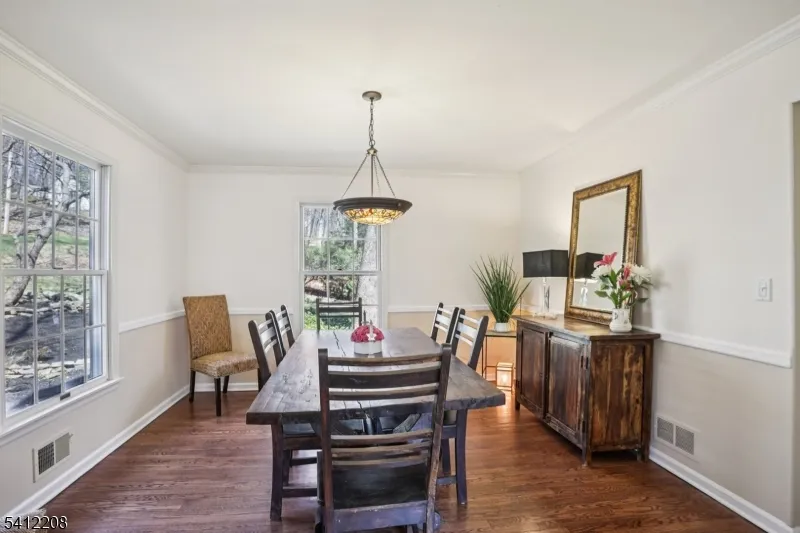 +"PublicRemarks": "This Puddingstone Heights home offers sophisticated living on an open, wooded lot w/ private grounds. It is a thoughtfully designed home which is ideal for aging in place with modern flexibility. Main floor features an eat-in kitchen which is open to the family room. This cozy den has a focal point of a woodburning fireplace. and also opens to the deck. A formal dining room opens to the very large living room; perfect for large holiday gatherings. The generously sized bedroom/office opens to the spacious deck and is also accessible directly from the foyer. Great for those who work from home. It also features a a large walk-in closet and has private access to the full bathroom equipped with a large stall shower. The back of the house faces east to allow a wash of morning sunshine each morning. Upstairs, three additional bedrooms include a master suite, and a large converted bedroom as a double walk-in closet, and a third additional nice sized bedroom next to the hall full bath. Hardwood in all rooms. All three full bathrooms have been updated from original. Finished basement for extra play/entertaining and tons of storage. Recent 2026 updates: NEW roof & AC. The oversized two car garage is accessed via a breezeway. Future one floor living affords accessibility potential making this a versatile home for today's discerning buyer. There is plenty of room for expansion on this acre plus property. Highly rated school system. Minutes from Morris Plains NJ Transit."