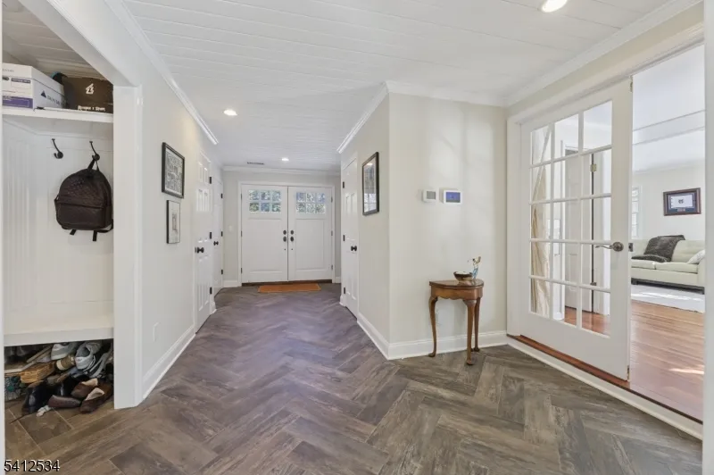 +"PublicRemarks": "Nestled in one of Essex County's most desirable areas, this secluded custom-built colonial on nearly 2 acres encompasses 5 beds, 7 baths, a guest house/home office addition (2007), an in-ground pool, a huge backyard, and every amenity one could want. The distinctive interior features deep crown moldings and trim, 8 inch wood plank flooring, 4 fireplaces, and custom details throughout. A semi-circular driveway brings you to the bright and spacious foyer opening to a classic library with wood planked floors and built-in shelving. The flow continues to the formal dining room with a picture window and the living room with a fireplace and a wall of glass French doors to the bluestone patio and custom fieldstone outdoor kitchen and bar. A first floor gym has 3 sets of sliding glass doors to the outside. Top-of-the-line appliances, sparkling white cabinetry, and an oversized island make the kitchen as functional as it is stunning. Off the kitchen is a large mudroom with 4 closets, a laundry room, and a half bath. Completing the main level is a large great room and a guest house/home office with its own separate entrance and private porch. Upstairs the luxurious primary bedroom suite with a sitting room and a private en suite featuring a soaking tub and an oversized glass shower.There are 2 large bedrooms on this level, one featuring its own full en suite bath plus a full main bathroom in the hall, and 2 more bedrooms and a full bath on the 3rd floor."