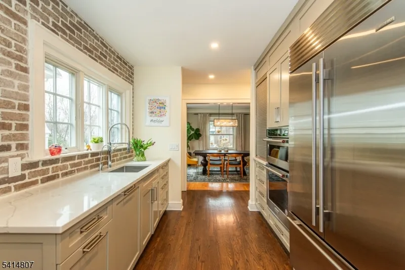 +"PublicRemarks": "Set on one of Glen Ridge's top, tree-lined streets, close to restaurants, farmer's market and NYC transport, this extraordinary Colonial, with interiors fit to grace the covers of Architectural Digest, masterfully blends a breath-taking NYC loft aesthetic with timeless architecture, showcasing professionally designed interiors and exceptional craftsmanship throughout. A 2019 two-story expansion has created a fabulous open-concept, w/ light and flow. Sun-drenched rooms with gorgeous custom windows lead effortlessly into a spectacular chef's kitchen, with custom wood cabinets, quartz counters, radiant heat floors, premium appliances, and dramatic wrap-around windows. French doors lead to an expansive bluestone patio and leveled yard for seamless indoor-outdoor living. Gorgeous architectural details define the main level, where custom millwork, designer lighting, Marvin windows, and Farrow & Ball palettes give a warm elegance. A serene primary suite is a sanctuary with dedicated dressing room, custom closets, marble-topped dual vanity, radiant heat stone floors, and spa-inspired, oversized shower. Generous secondary bedrooms are fitted with custom closets and beautifully updated bath. A third-floor bedroom has fabulous cathedral ceilings, while the newly renovated lower level rec room could rival any private club, with a custom cinema, designer bar, dedicated laundry, and premium finishes. Mechanicals include newer HVAC systems and water heaters, new sewer line, and EV charging."