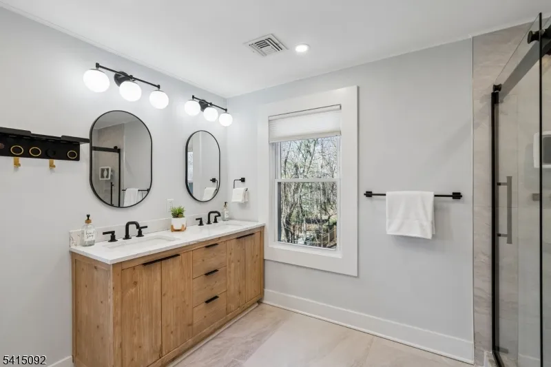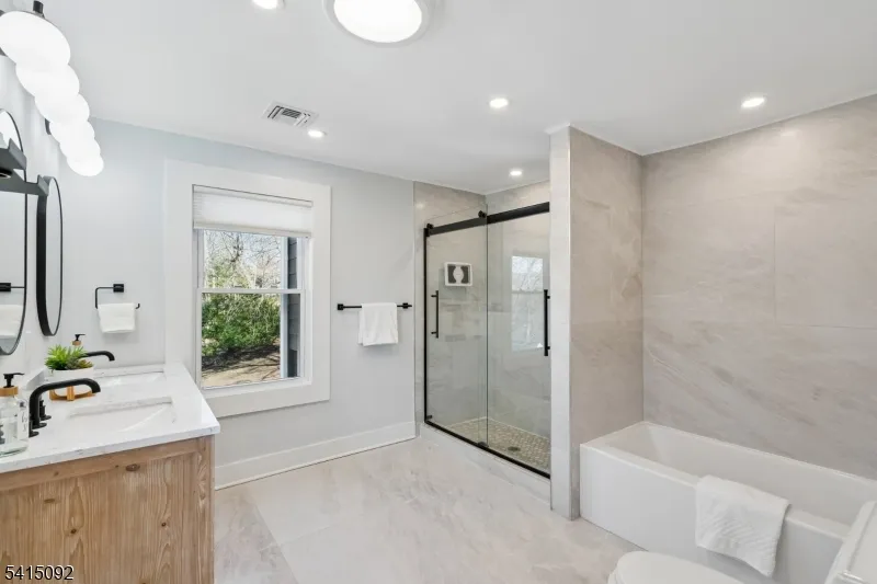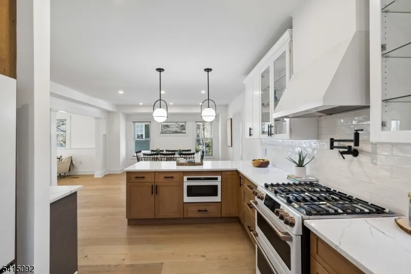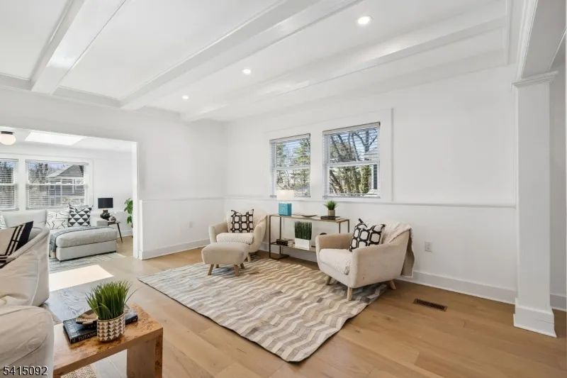 +"PublicRemarks": "Incredible Maplewood dream home in a coveted location just steps from Village, trains and parks. Extensively renovated in 2024, this turn-key home offers nearly 4000 sq. ft. of living space across 4-levels with light-filled rooms arranged in a versatile, flowing floorplan. Enter into a dreamy, open-plan 1st floor which beautifully blends period details (beamed ceilings, wide moldings) with stunning modern finishes, including stylish lighting and wide-plank French oak flooring. The dream kitchen features high-end GE Cafe appliances, gas range with pot filler, quartz counters, tile backsplash, ceramic sink and full-height, soft-close cabinety. A breakfast bar with seating and serving bar with beverage fridge are nearby. Generous dining room and living room spaces, a sun-drenched family room, half bath and versatile sunroom overlooking the yard complete this level. Upstairs find bright bedrooms and 3 full baths, including the sophisticated primary with large walk-in closet and spacious bath with double vanity, soaking tub and glass-enclosed shower. The lower level is fully finished to offer leisure space, laundry room with sink and built-in cabinets and bonus full bath with shower and access to the garage. The fenced backyard features a composite deck overlooking a private, woodsy backyard. 2024 updates include a new roof and gutters, new thermal windows, new thermal side doors and custom built-in shelving. Smart home dimmers (1st flr), Nest thermostats and front door lock."